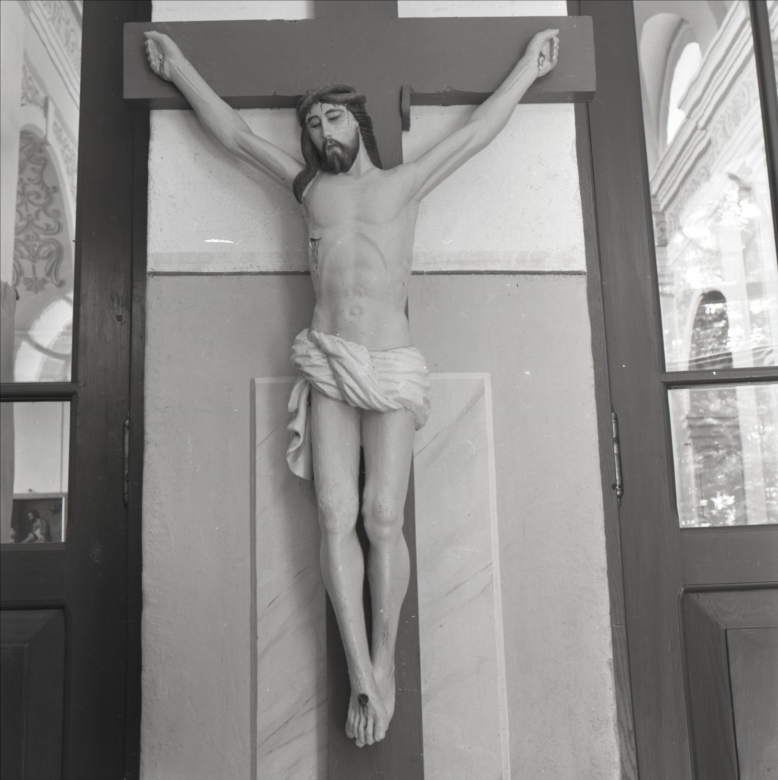Rogovkas katoļu baznīca: Krucifikss pie ieejas kreisajā pusē
