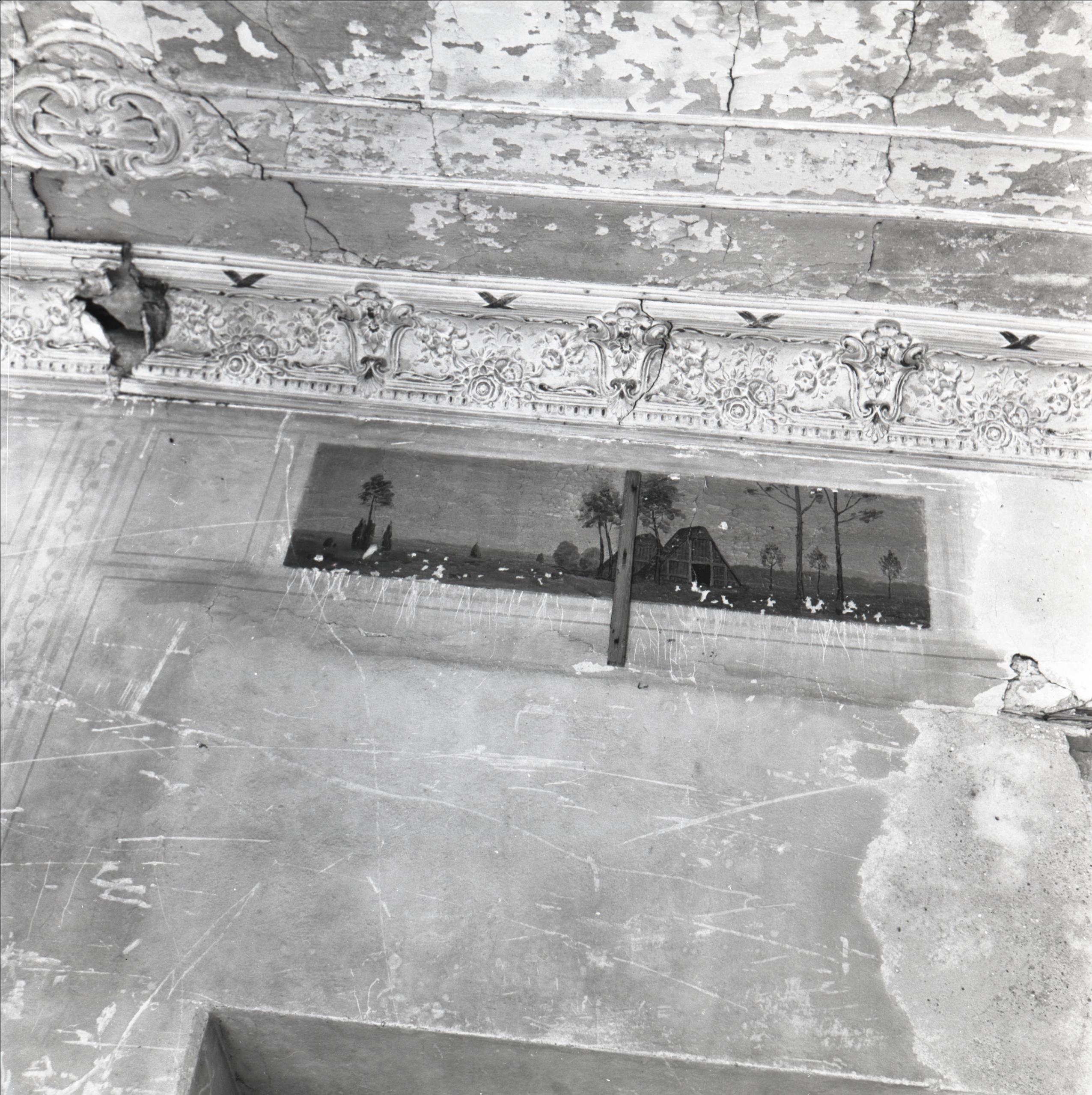 Augulienas muiža. Kungu mājas drupas: Griestu un sienu gleznojuma fragments, plaisas