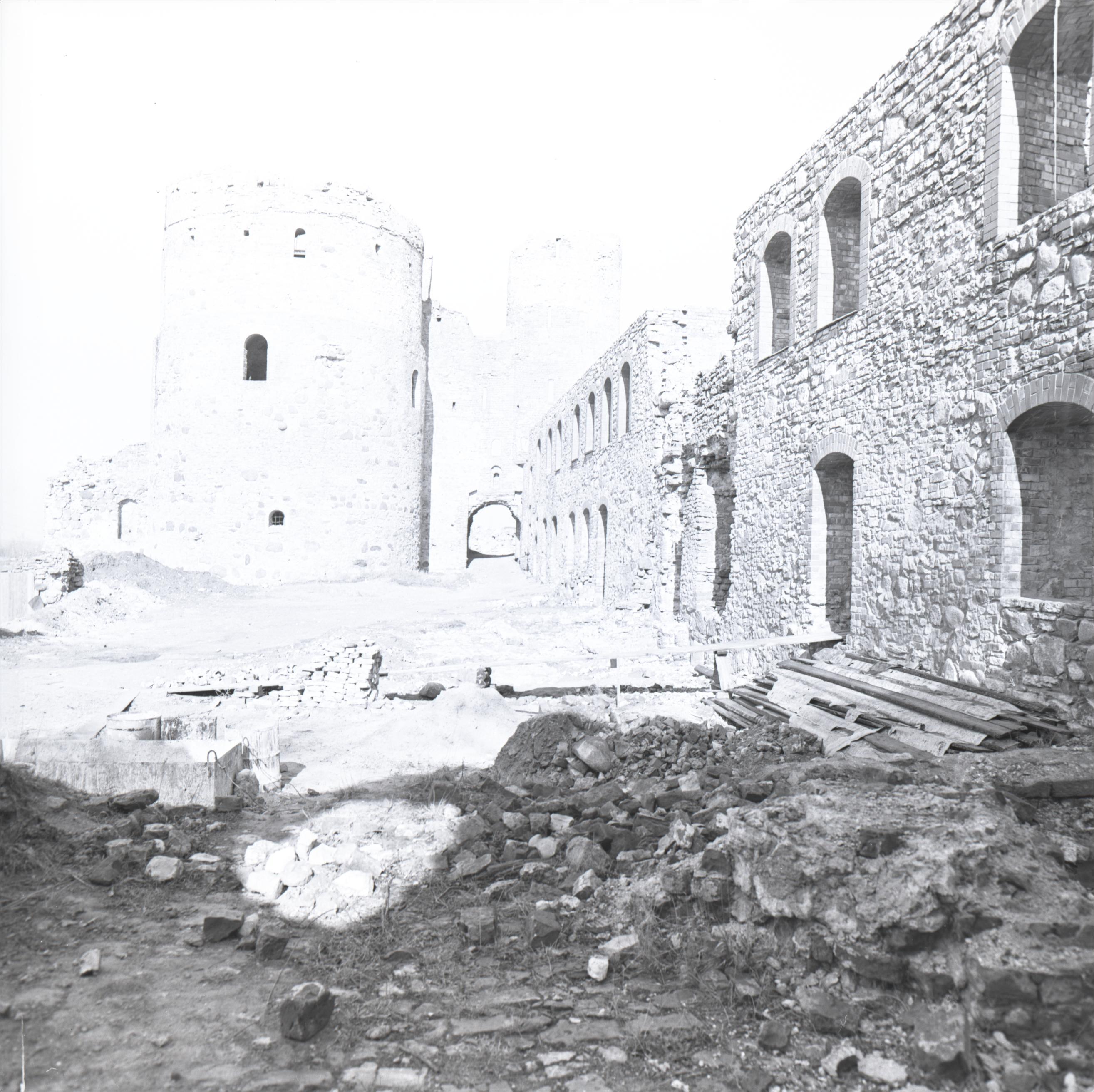 Bauskas pilsdrupas ar parku: Restaurēta siena un tornis, būvmateriāli