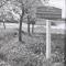 Vieta, kur krita Voldemārs Ezernieks: Piemiņas plāksne, koki, fonā saimniecības ēkas