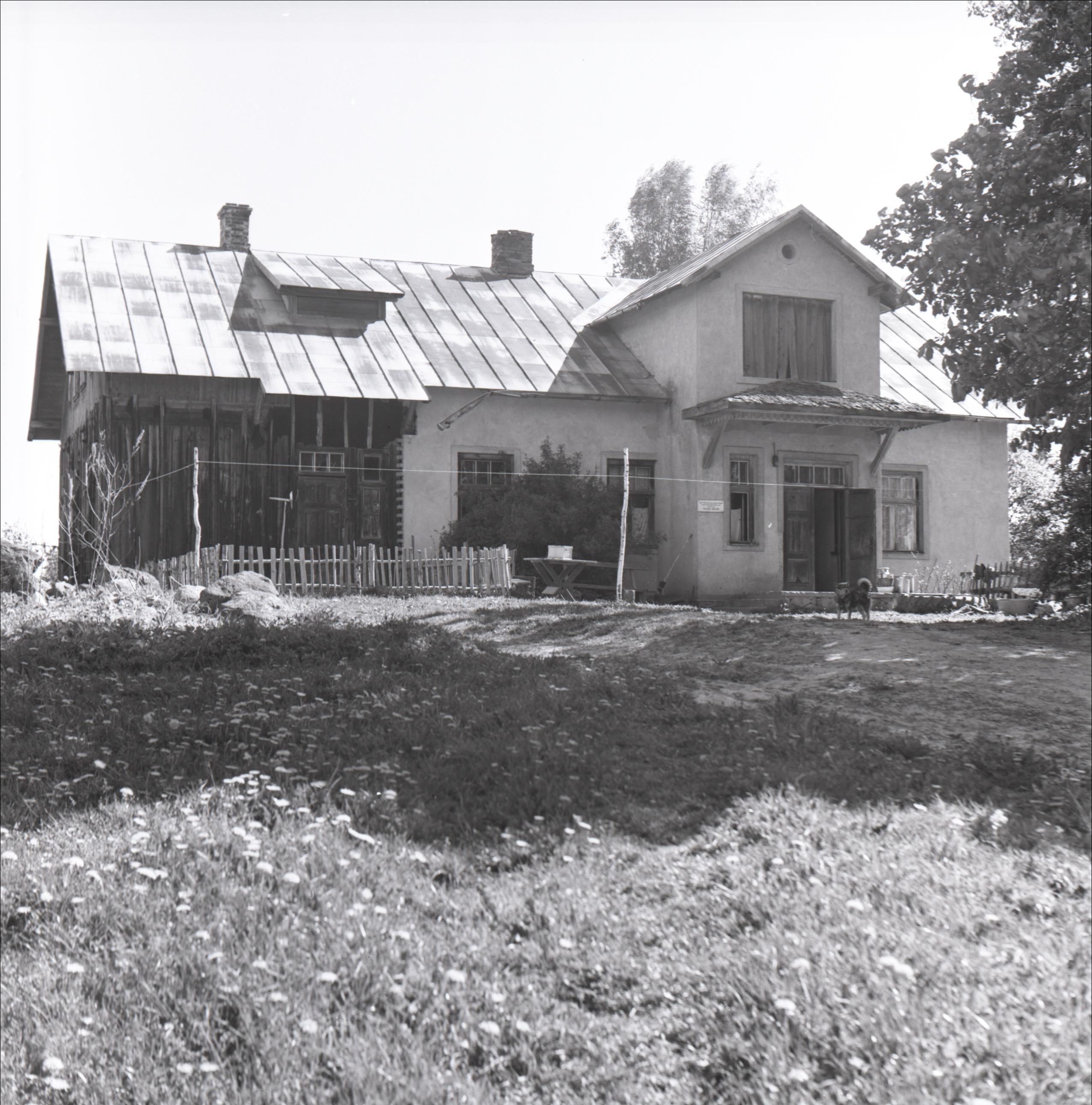 Māja, kurā dzīvoja Pēteris Znotiņš: Dzīvojamā ēka – fasāde, ieeja, pagalms, suns