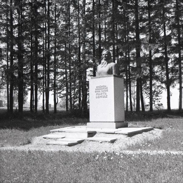Martas Semules krūšu tēls pie Tautas nama: Piemienklis ar Martas Semules krūšu tēlu, fonā koki