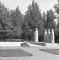 2. Pasaules kara upuru kapi Spārītes parkā: Piemineklis – četras cilvēku skultūrpas (karavīrs un trīs sievietes). Redzams laukums pie pieminekļa, koki, apstādījumi, mūžīgā uguns