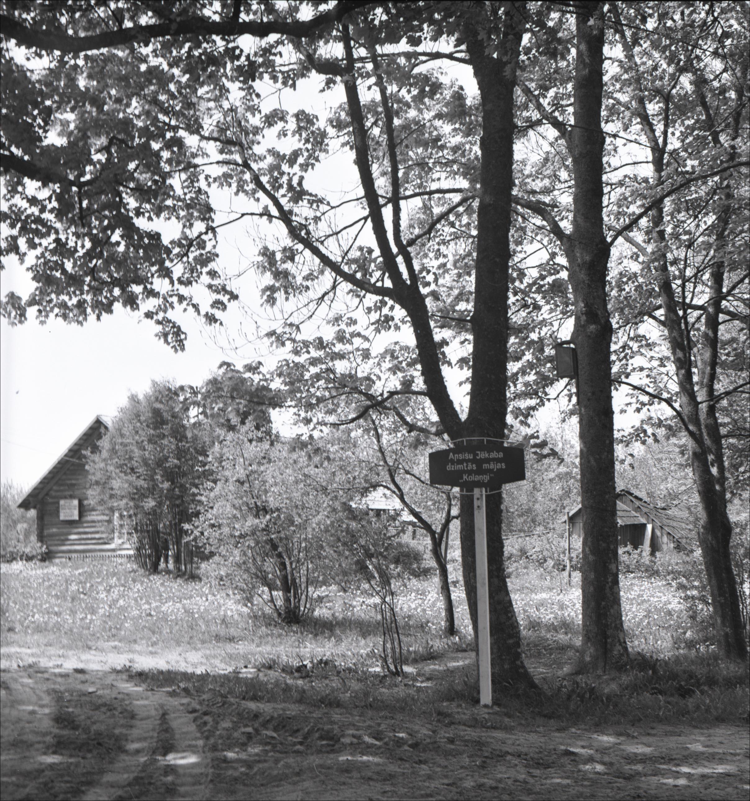 Apsīšu Jēkaba dzimtās mājas "Kalaņģi": Plāskne, fonā ēkas, koki, pagalms