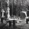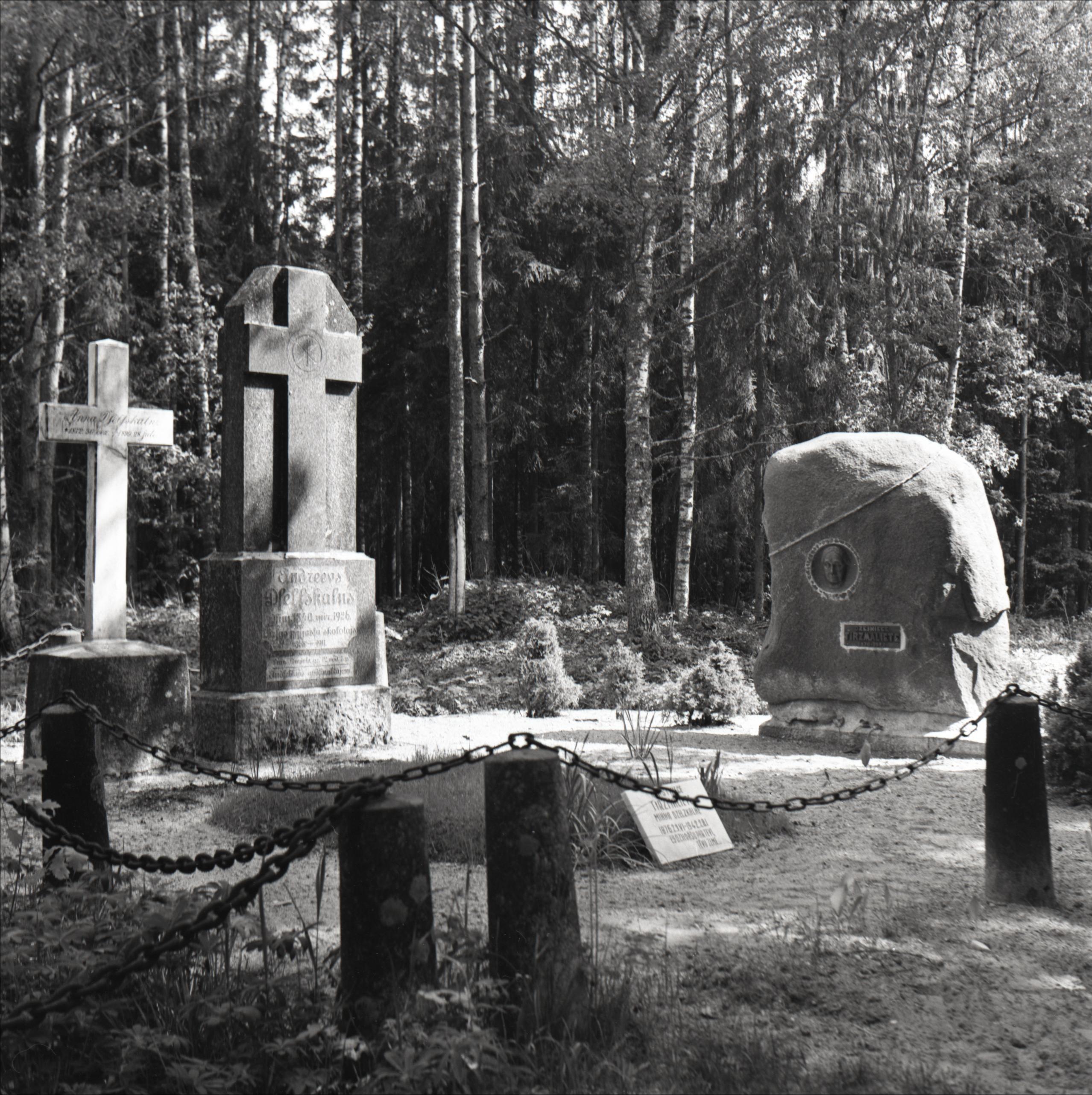 Dzejnieces Tirzmalietes kaps: Vairāki kapa pieminekļi, apstādījumi, koki, metāla ķēdes iežogojums