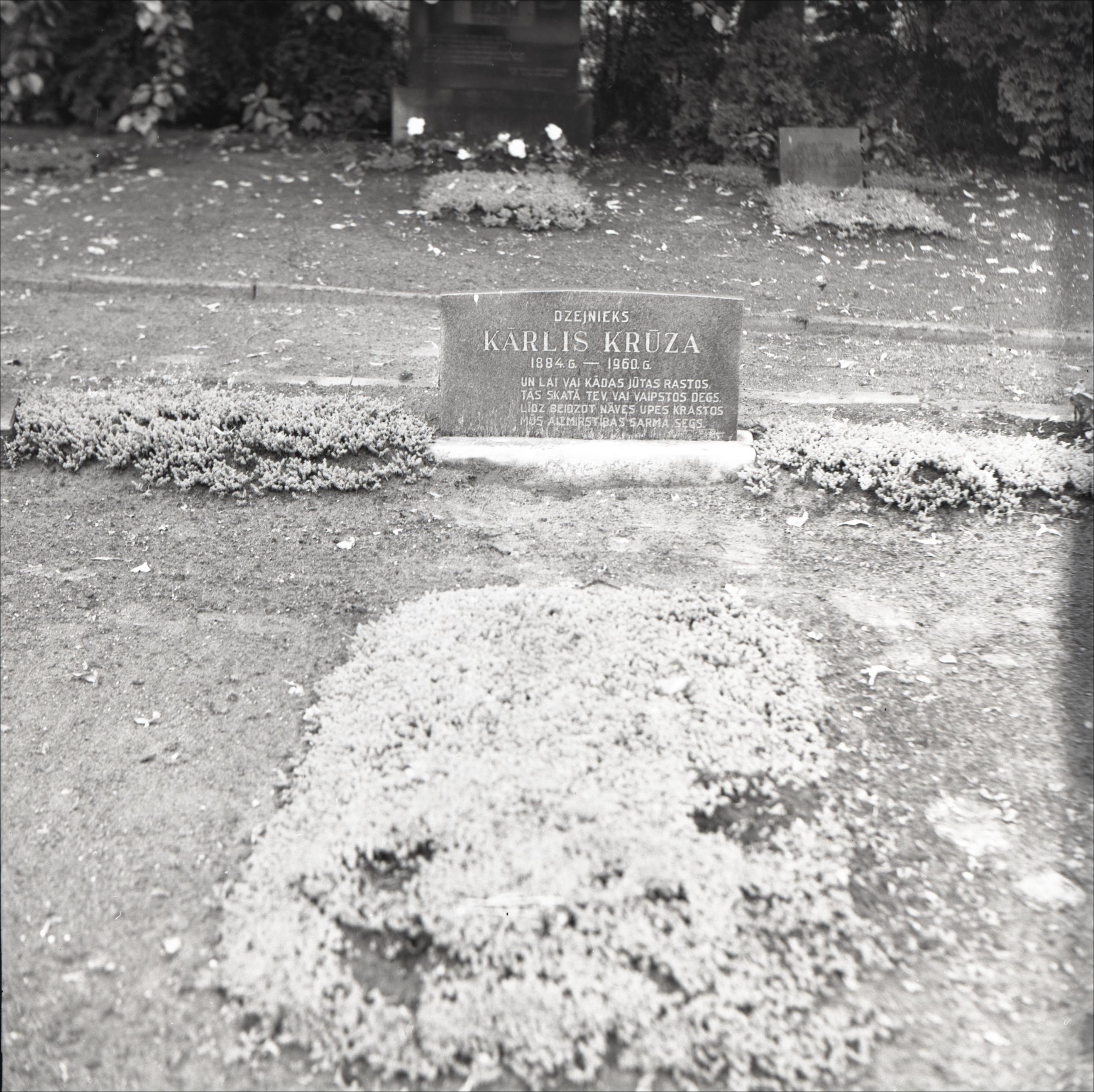 Raiņa kapu ansamblis t. sk. vārti, administratīvā ēka, kapliča, krematorija: Kārļa Krūzes kaps – kapa plāksne ar iegravētu tekstu, apstādījumi