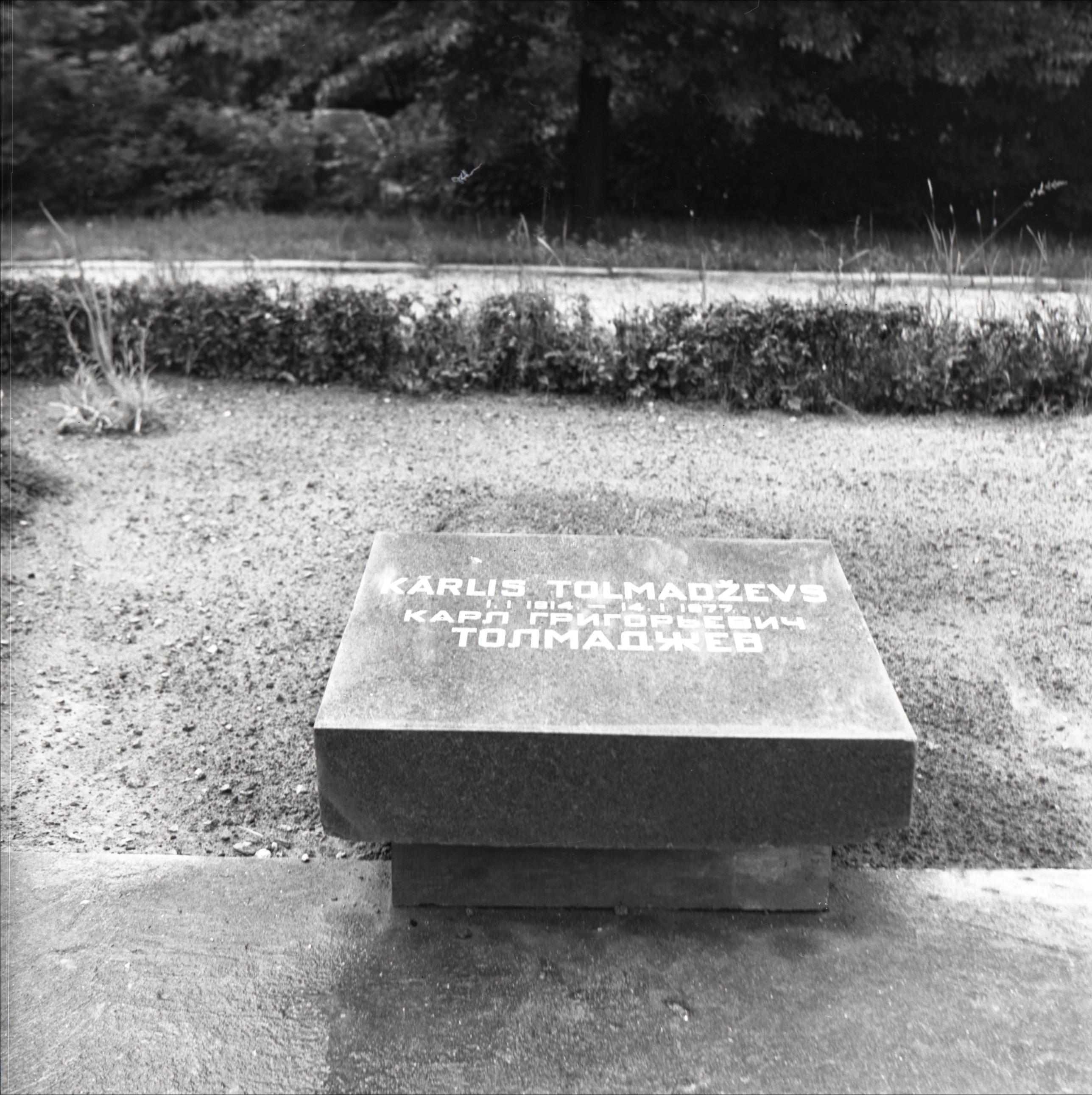 Raiņa kapu ansamblis t. sk. vārti, administratīvā ēka, kapliča, krematorija: Kārļa Tolmadževa kaps – kapa plāksne, apstādījumi
