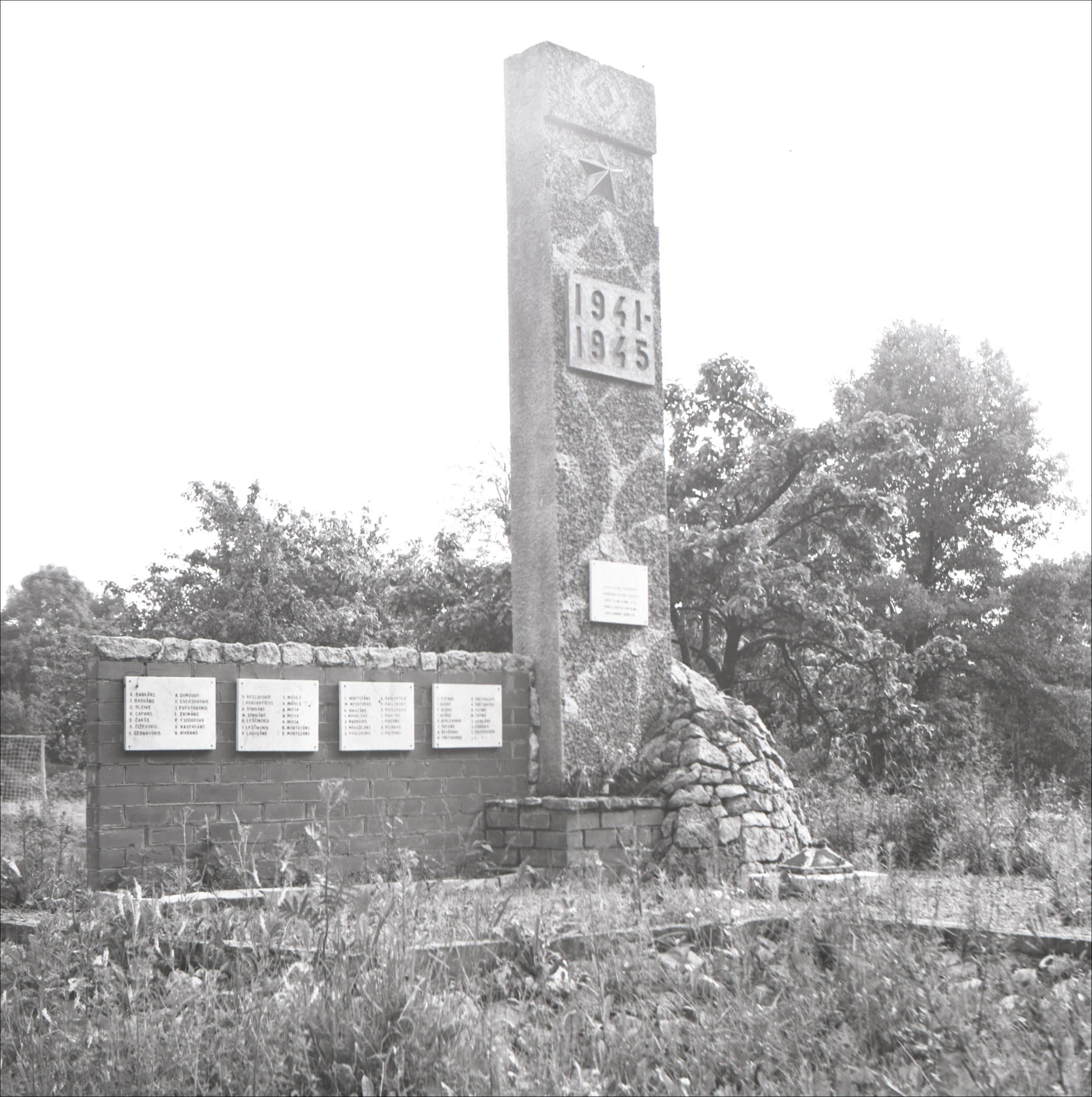 Piemineklis 2. Pasaules karā kritušajiem ciema iedzīvotājiem: Taisnstūra formas piemineklis ar iegravētu zvaigzni un gadskaitļiem "1941 – 1945", sānā no ķieģeļiem veidota siena, uz kuras piestiprinātas piemiņas plāksnes ar kritušo uzskaitījumu. Fonā koki