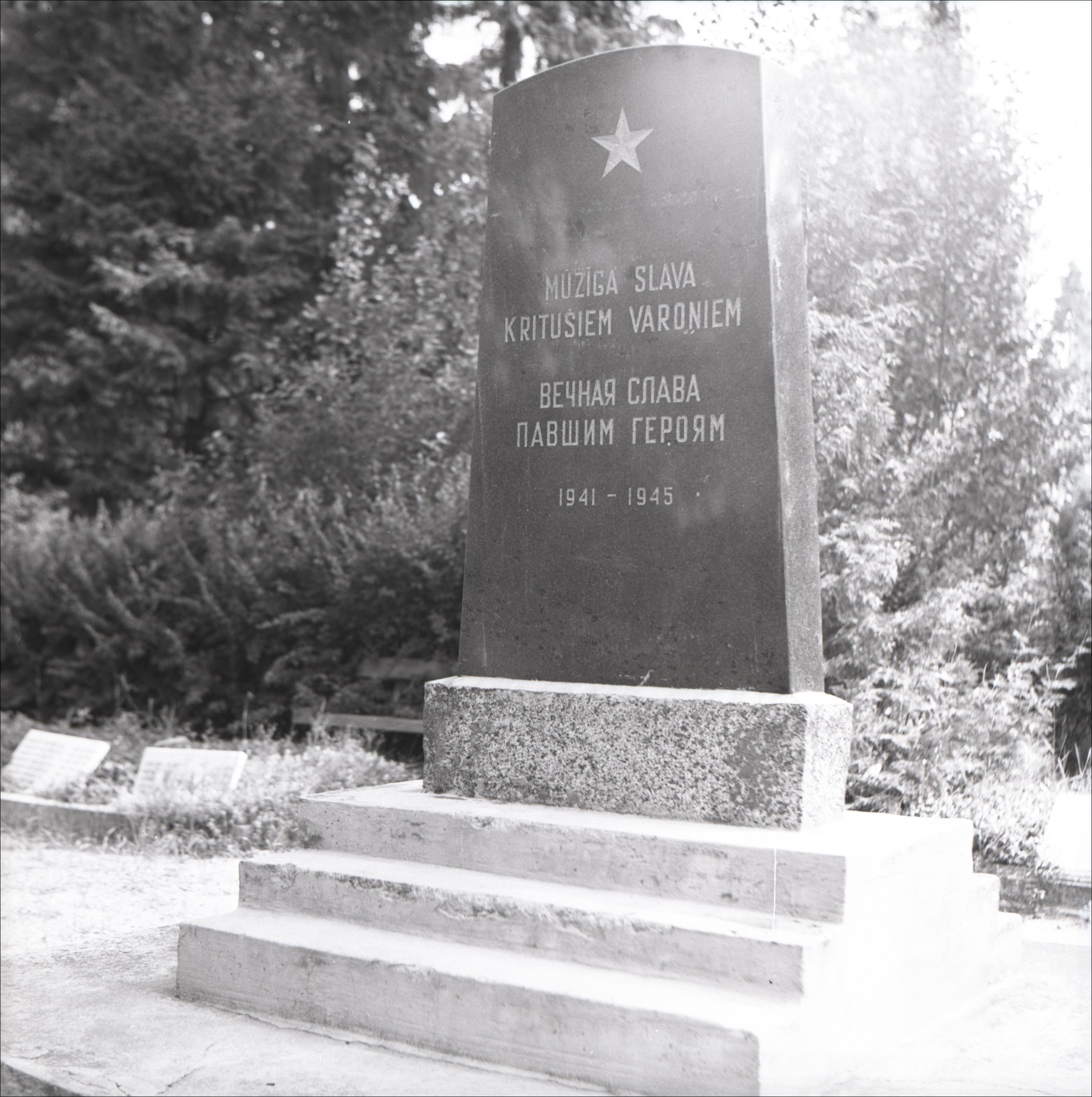 2. Pasaules karā kritušo kapi: Obelisks ar iegravētu tekstu "Mūžīga slava"
