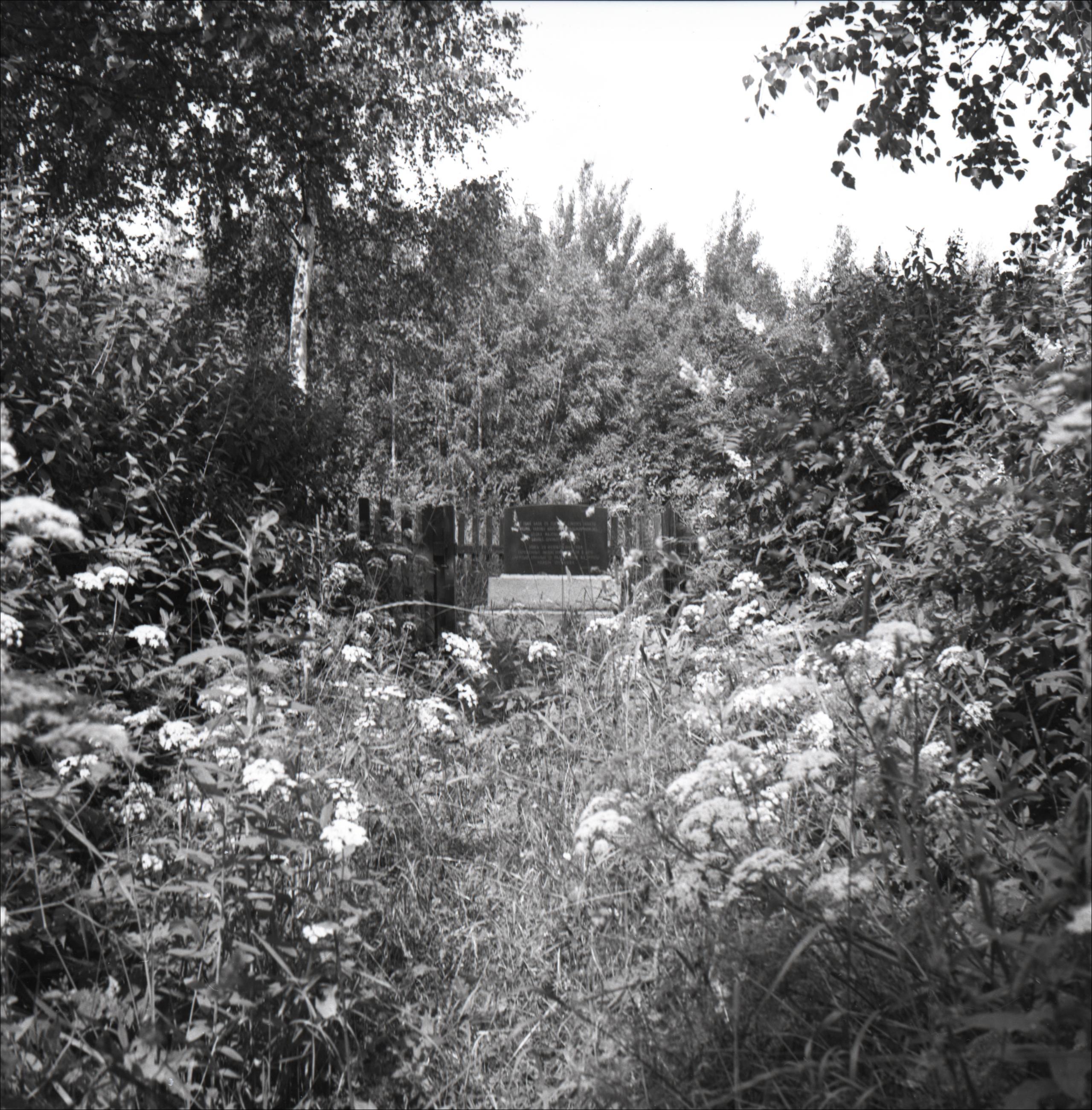 Čugunova cīņas un bojā ejas vieta 1944. gadā: Plāksne, priekšplānā gara zāle, fonā mežs