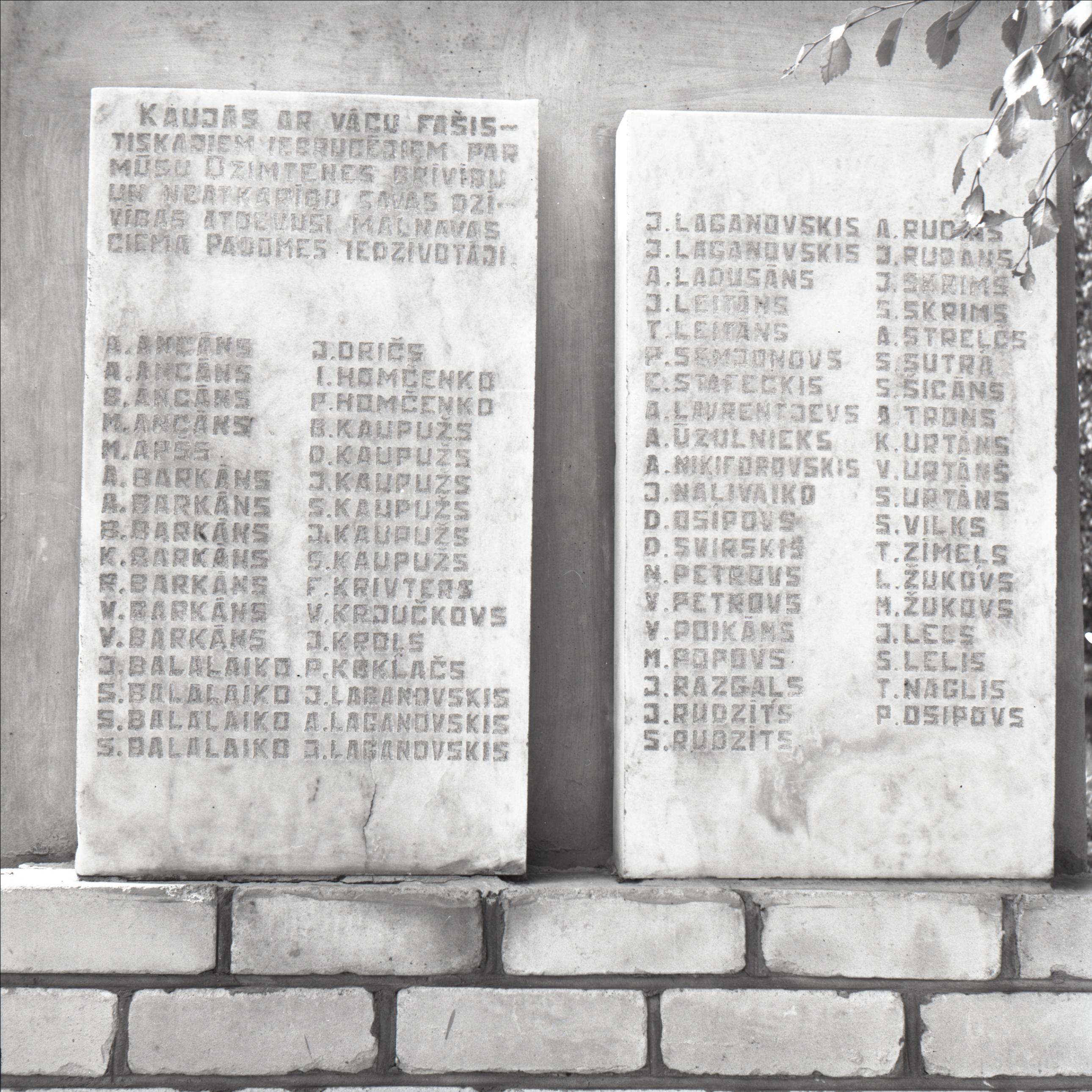 Piemineklis 2. Pasaules karā kritušajiem ciema iedzīvotājiem: Plāksnes ar kritušo vārdiem