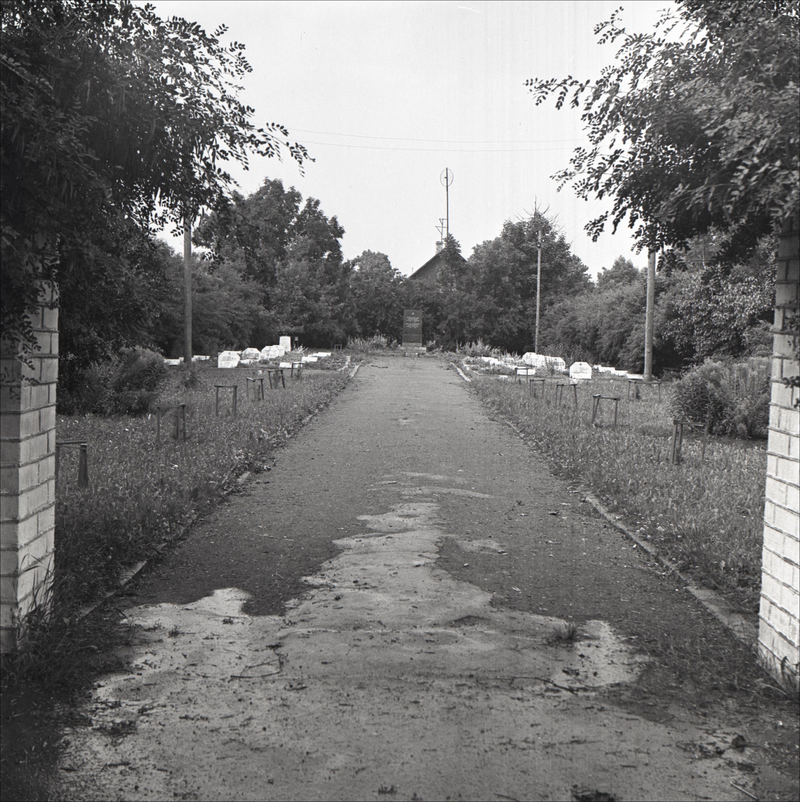 2. Pasaules karā kritušo kapi: Ieeja, centrā celiņš, tā abās malās piemiņas plāksnes, galā piemineklis