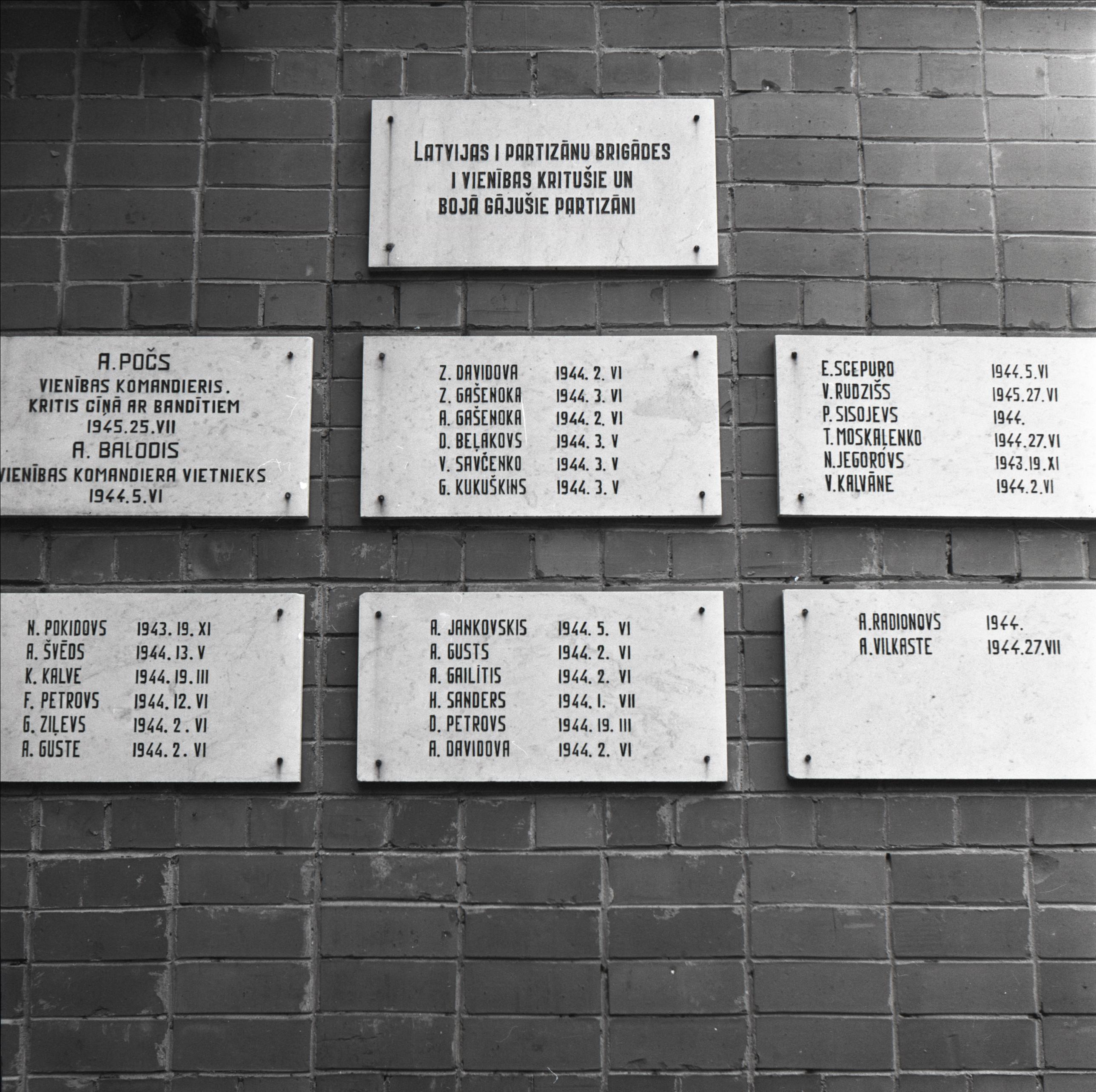 Piemineklis 2. Pasaules karā kritušajiem pilsētas iedzīvotājiem: Mūris ar piemiņas plāksnēm. Uz tām kritušo vārdi