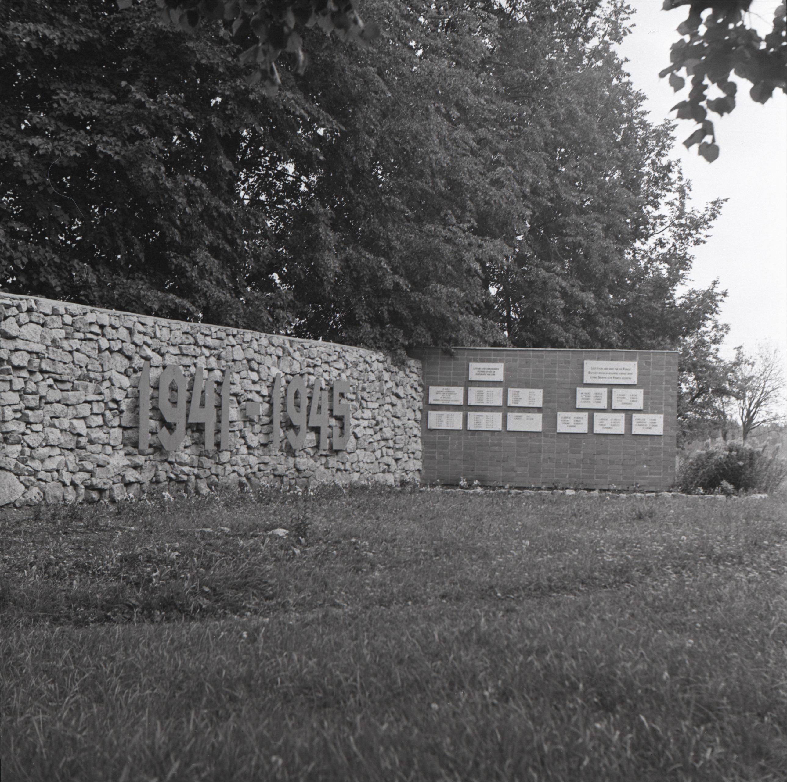 Piemiņas vieta 2. Pasaules karā kritušajiem iedzīvotājiem: Mūris ar piemiņas plāksnēm. Uz tām kritušo vārdi, blakus akmeņu mūris ar gadskaitļiem "1941-1945"