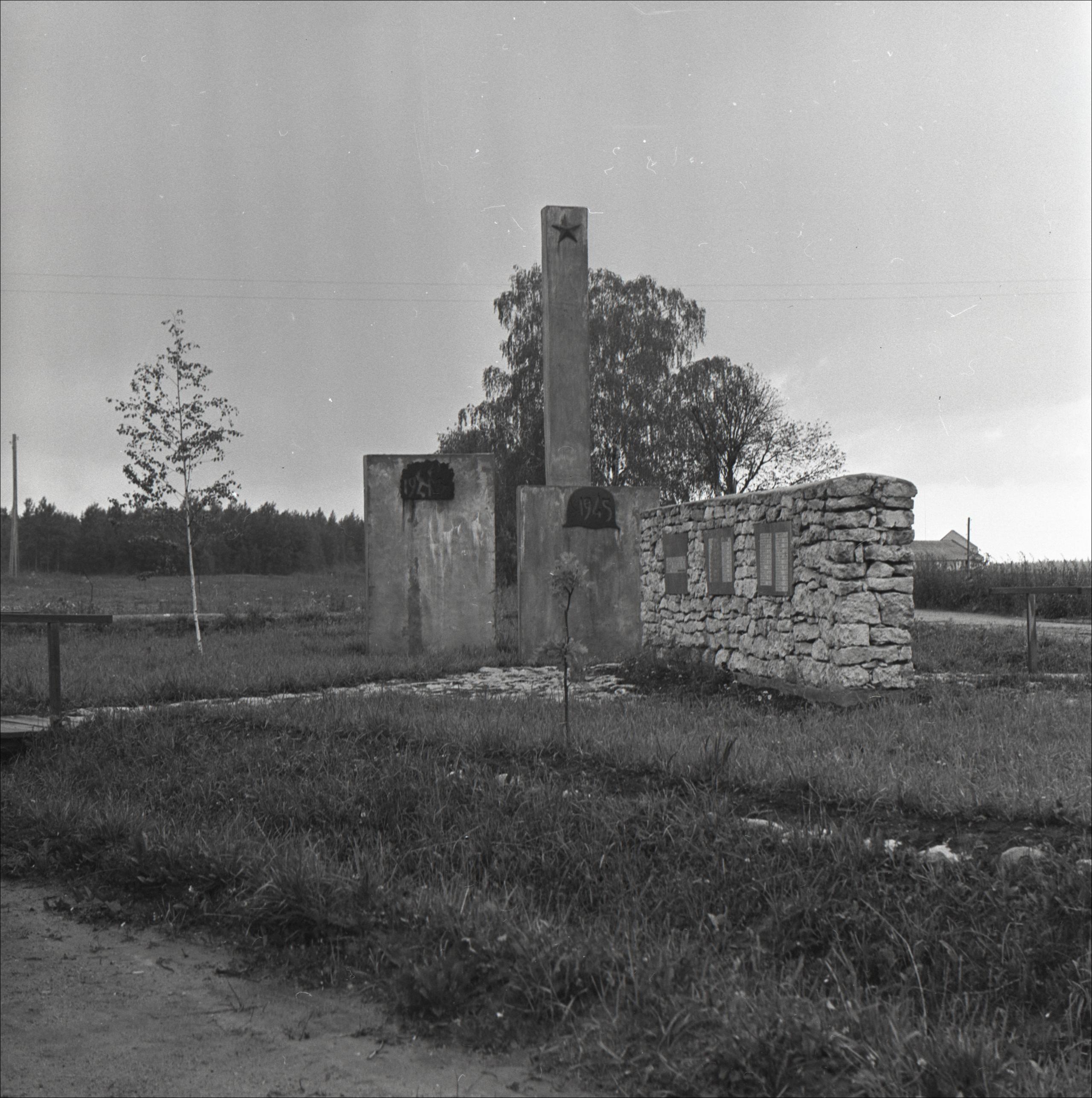 Piemiņas vieta 2. Pasaules karā kritušajiem iedzīvotājiem: Akmens mūris ar piemiņas plāksnēm, divas stēlas, obelisks ar zvaigzni