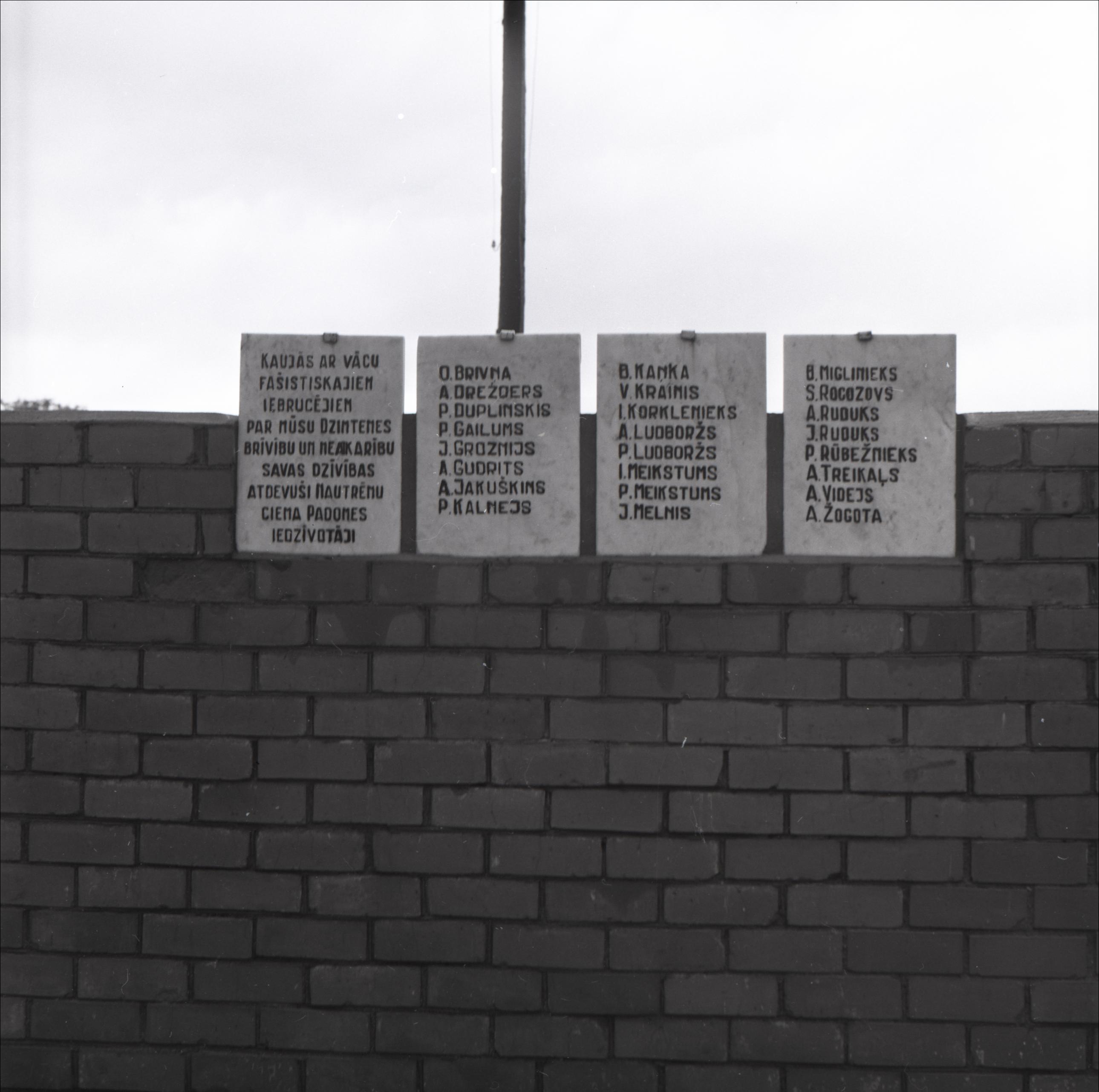 Piemineklis 2. Pasaules karā kritušajiem ciema iedzīvotājiem: Plāksnes ar kritušo vārdiem