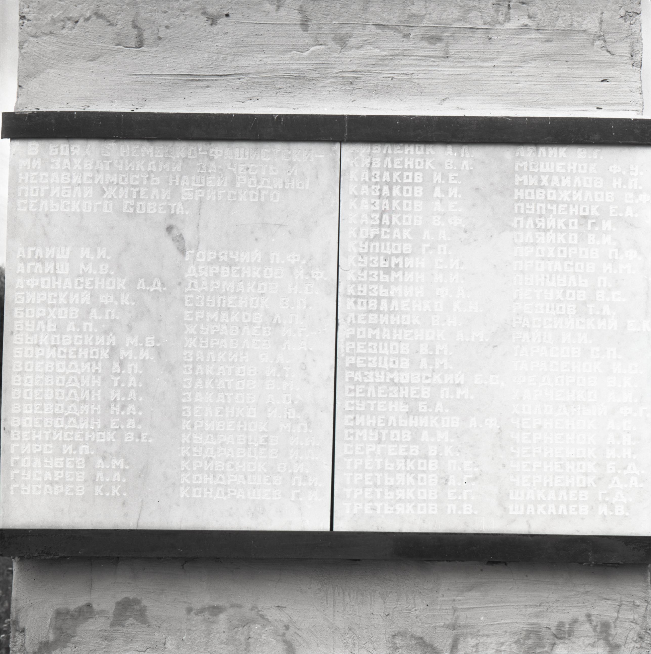 Piemineklis 2. Pasaules karā kritušajiem ciema iedzīvotājiem: Plāksne ar kritušo vārdiem