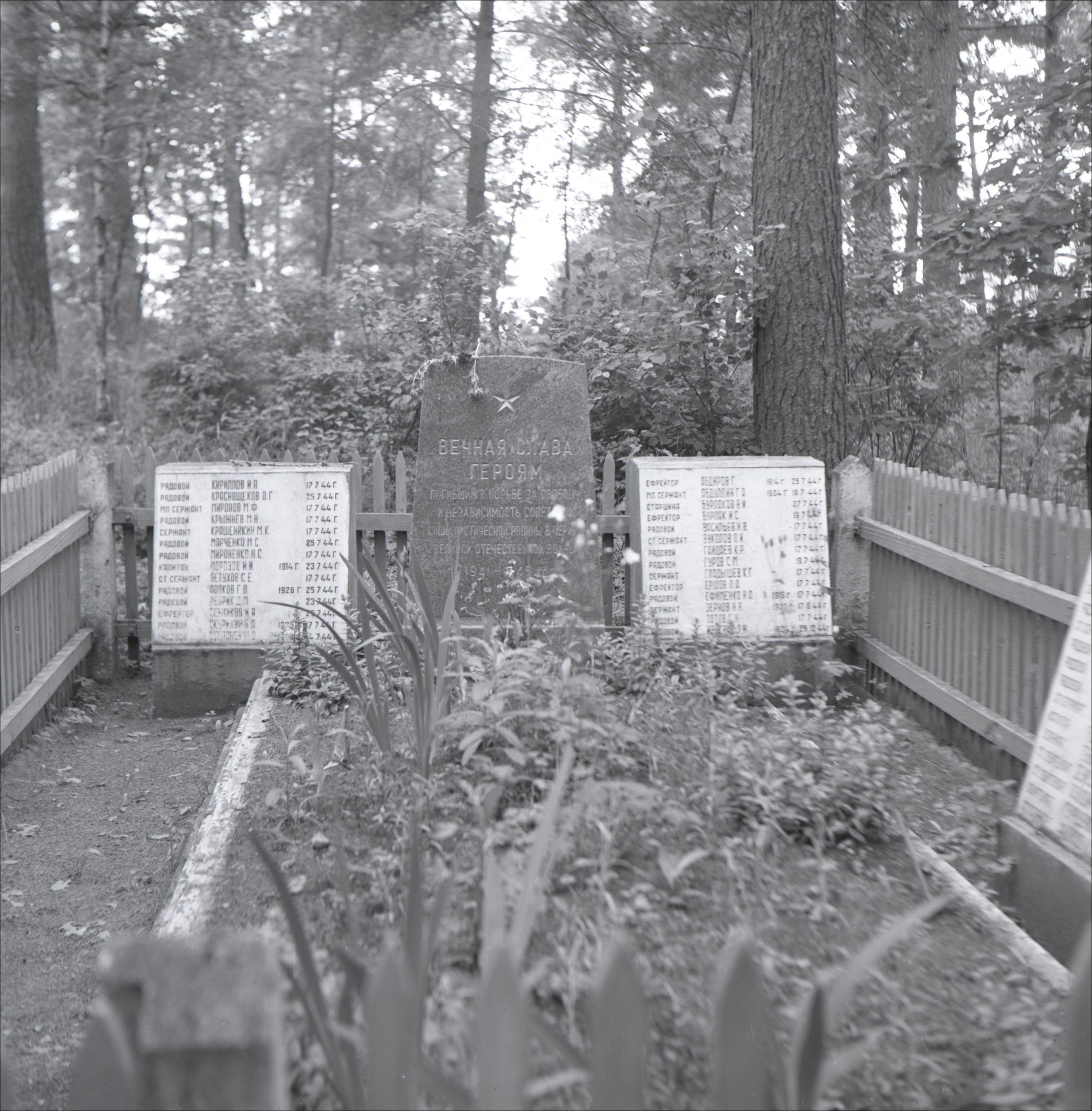 2. Pasaules karā kritušo kapi: Kapa piemineklis, divas plāksnes ar kritušo vārdiem, apstādījumi, apkārt sēta