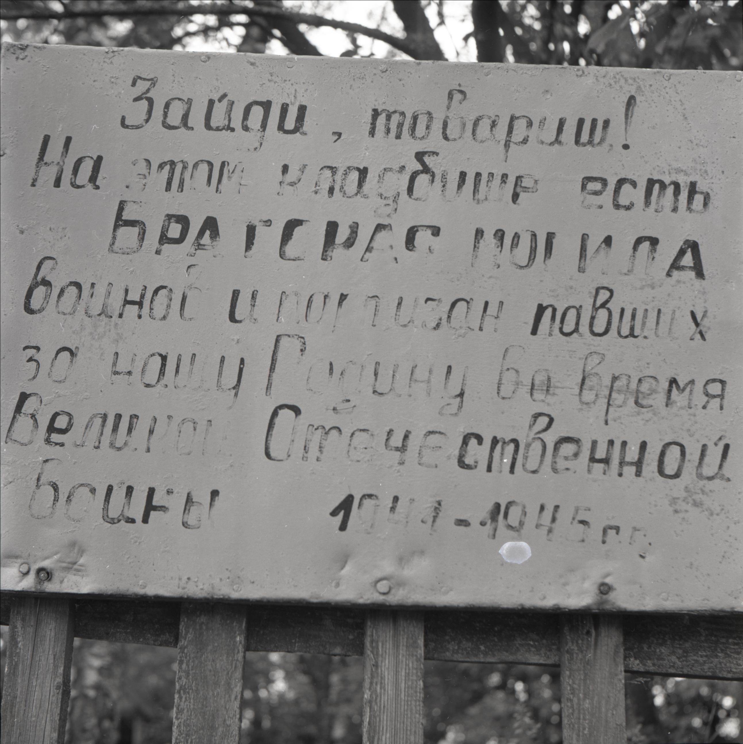 2. Pasaules karā kritušo kapi: Plāksne ar uzrakstu krievu valodā pie ieejas kapos