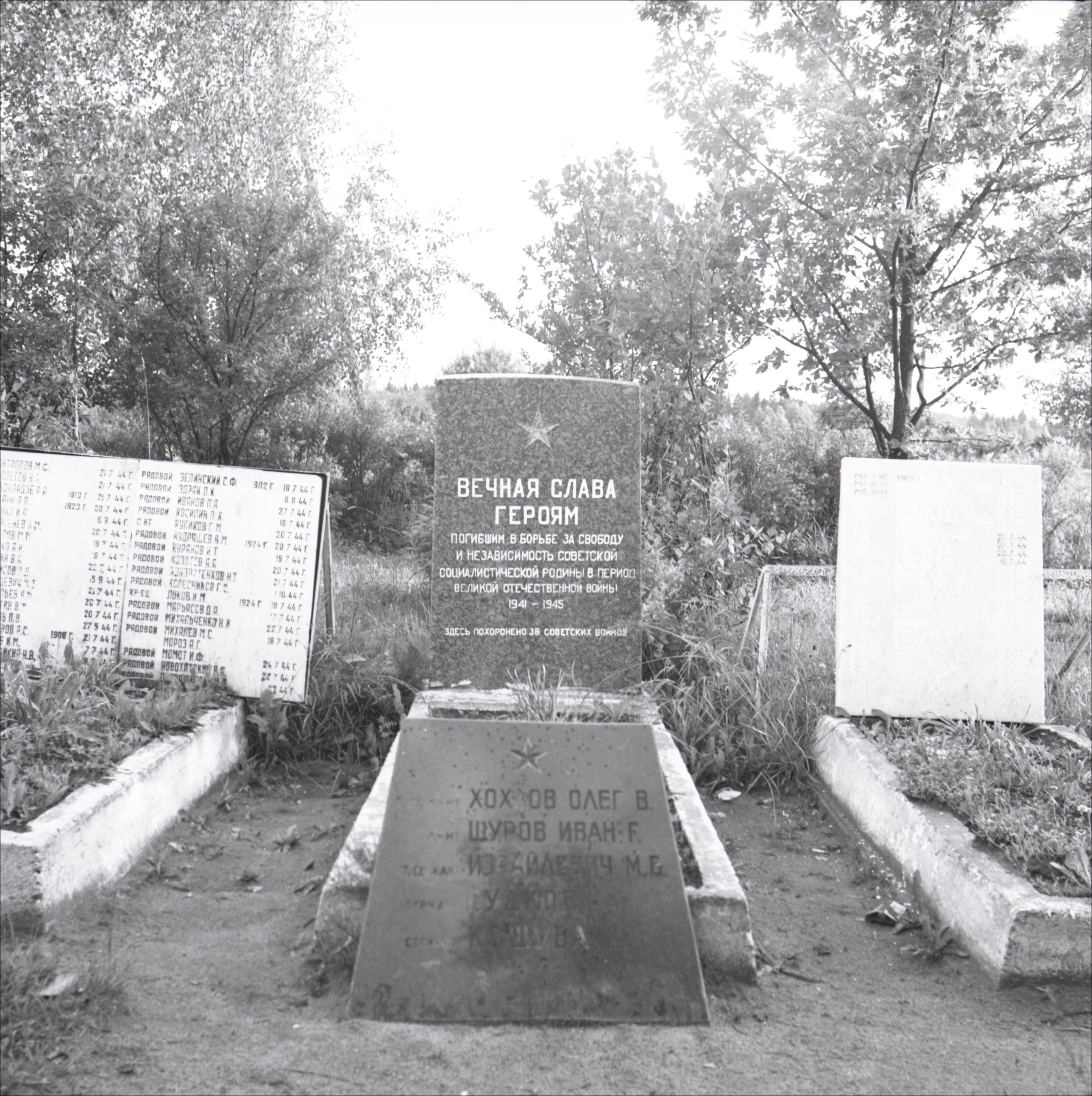 2. Pasaules karā kritušo kapi: Piemineklis ar uzrakstu "Mūžīga slava varoņiem" un zvaigzni, piemiņas plāksnes ar kritušo vārdiem, trīs kapa vietas