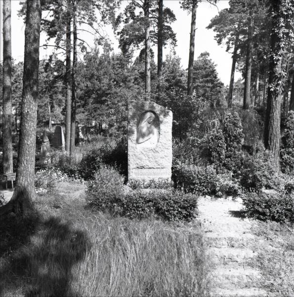 1. Meža kapi: Keramiķa Staņislava Kalves kaps. Kapa piemineklis ar sievietes tēlu, apstādījumi