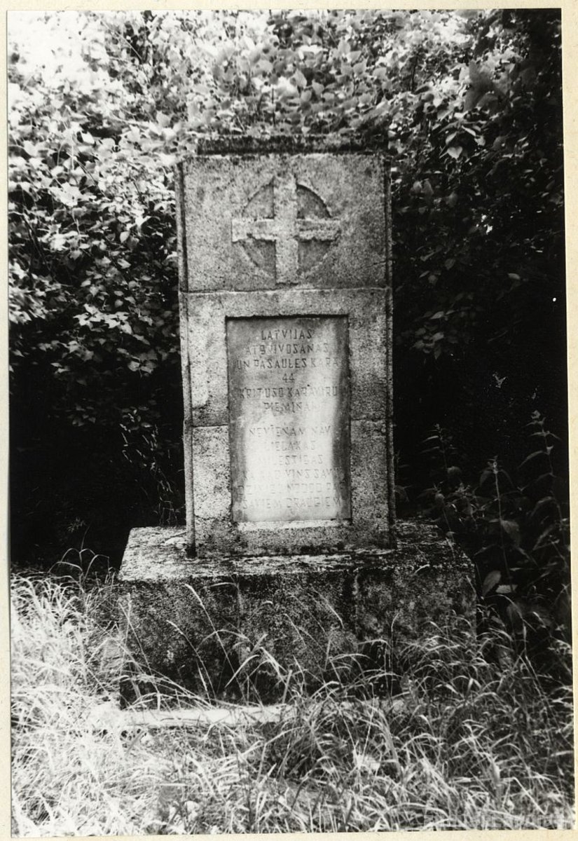 Piemineklis Pirmajā pasaules karā un Atbrīvošanās cīņās kritušajiem varoņiem Kapusila (Rumbulas) kapsētā atklāts 1935. gadā
