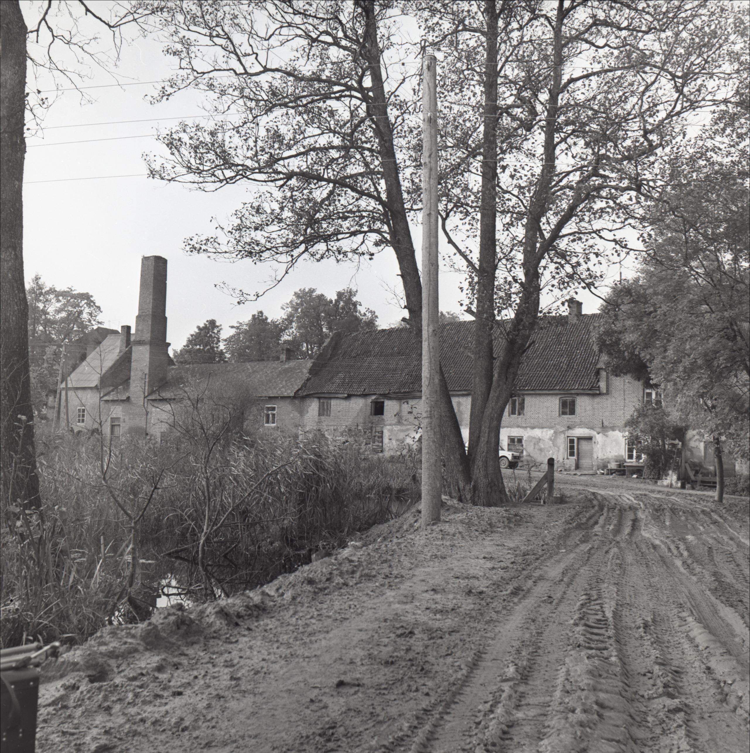 Nabes muižas apbūve: Brūzis, dzirnavas – piebraucamais ceļš, koks, fasādes