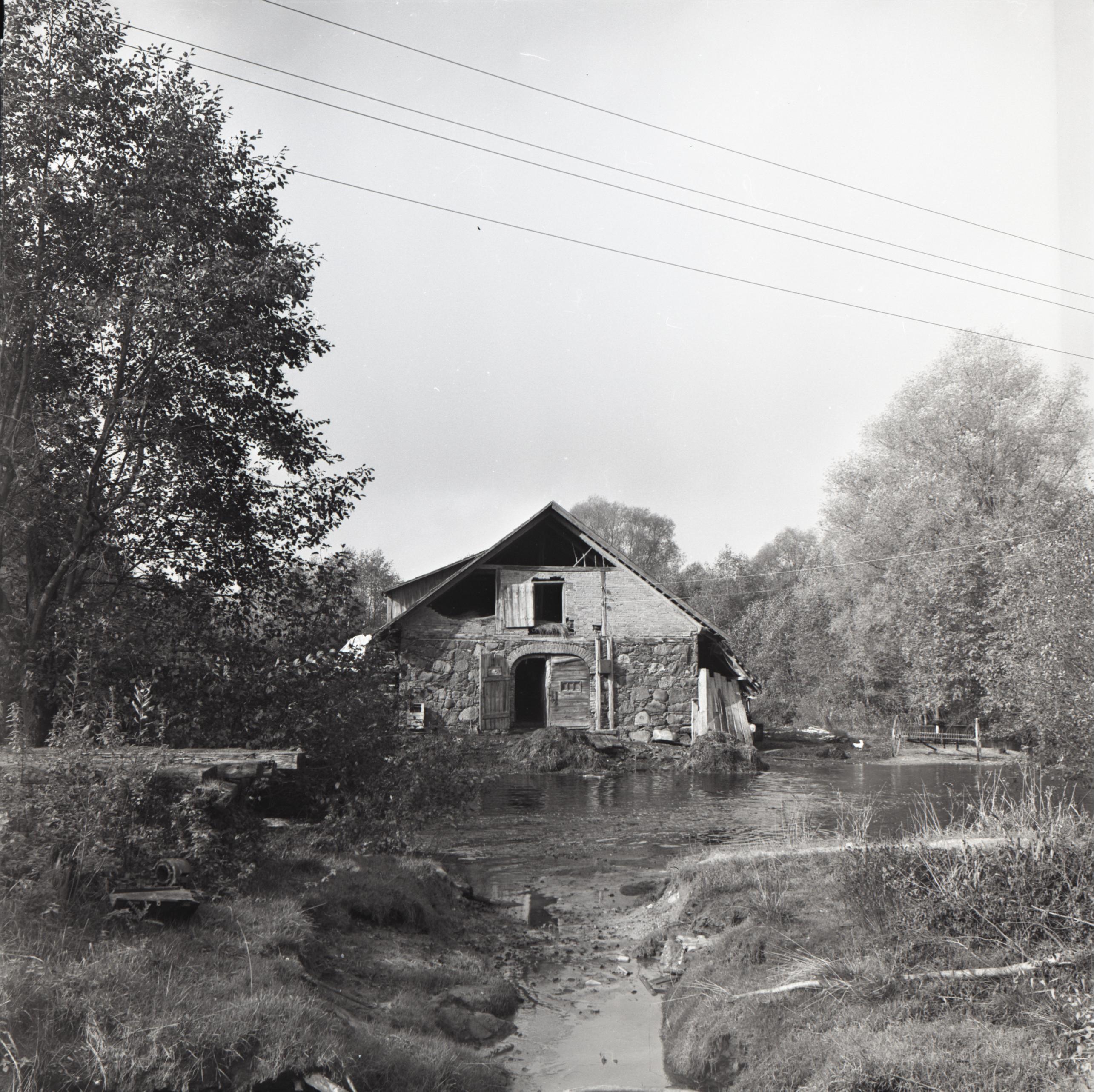 Nabes muižas apbūve: Dzirnavas, saimniecības ēka – gala fasāde, dīķis, upe