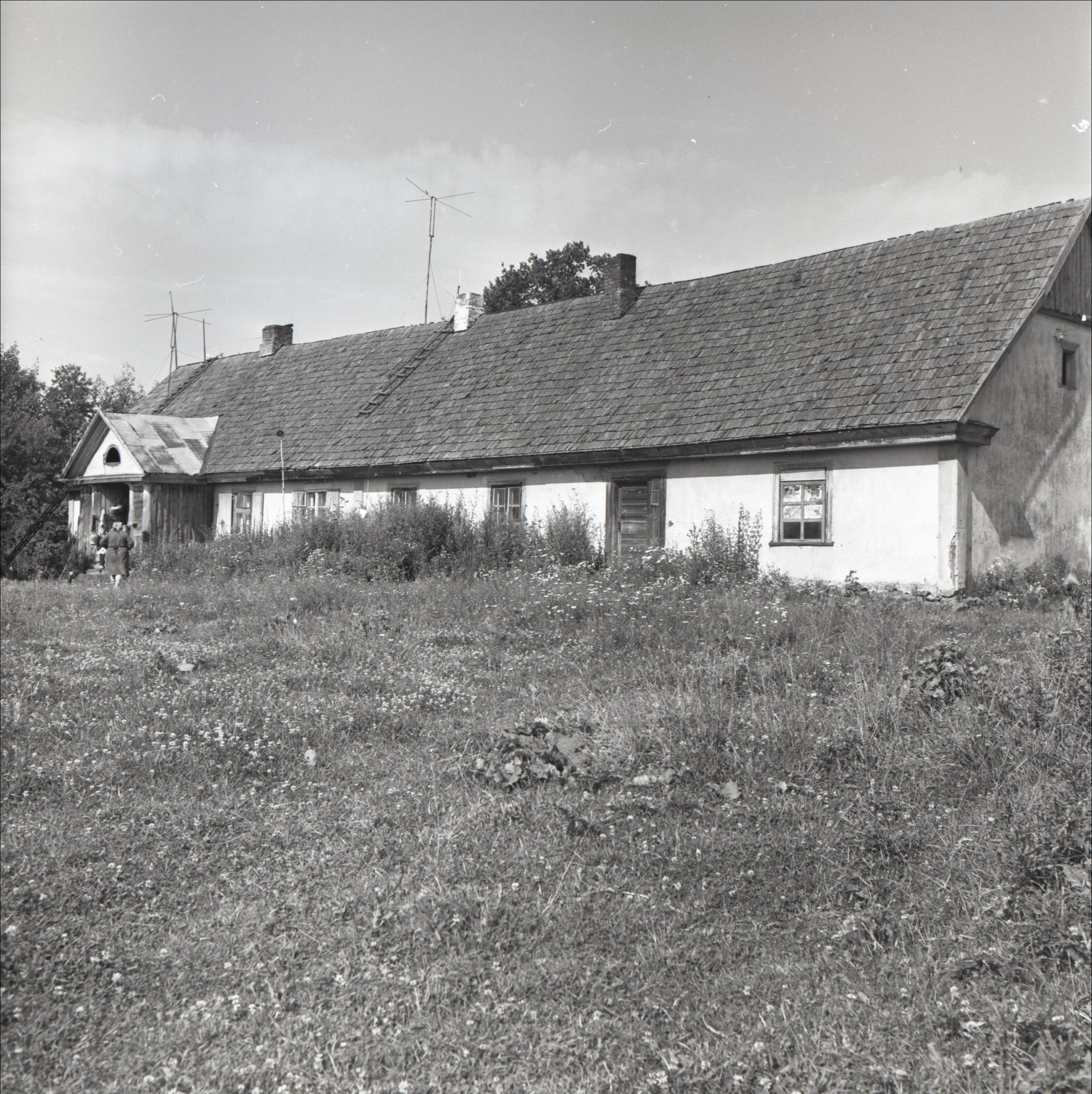 Mājas, kur dzimis J. Beika: Vienstāvu dzīvojamā ēka, ieeja, galvenā fasāde, sieviete