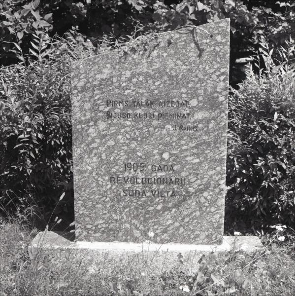 1905. gada revolucionāru piemiņas vieta pilsdrupās: Piemineklis. Uz tā iegravēts Raiņa citāts, aiz tā apstādījumi