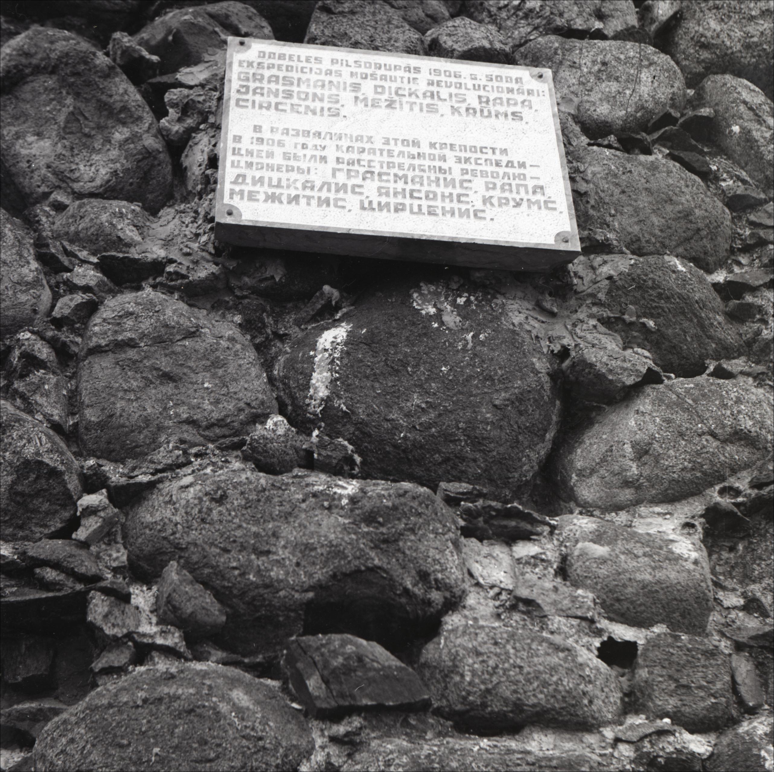 Livonijas ordeņa pilsdrupas: Plāksne 1906. gadā nošautajiem revolucionāriem
