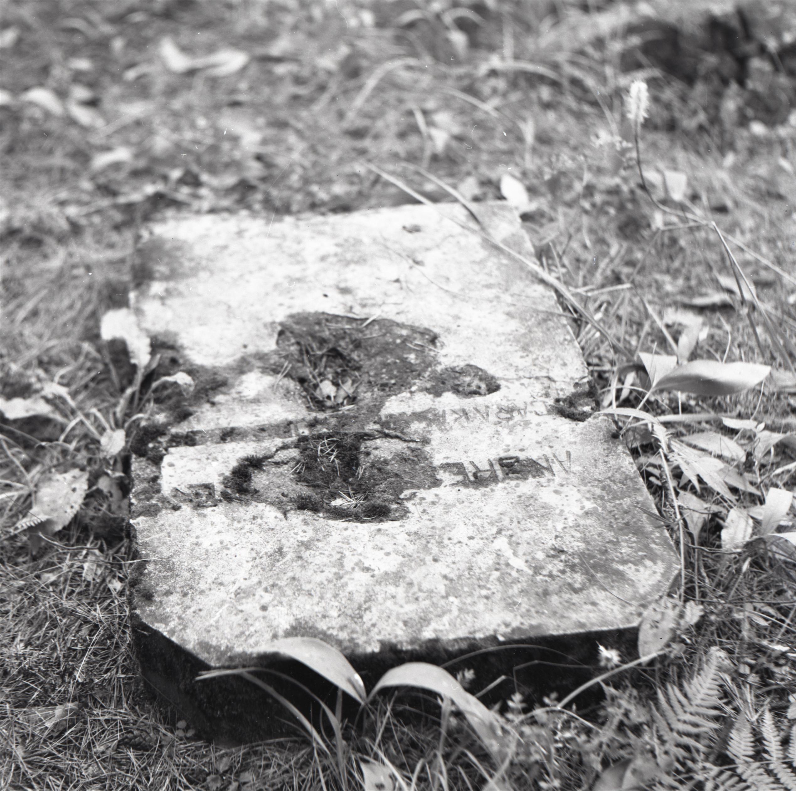 A. Paegļa kaps ar nogāztu pieminekli: Apgāzts piemineklis ar uzrakstu, daļa pieminekļa bojāta