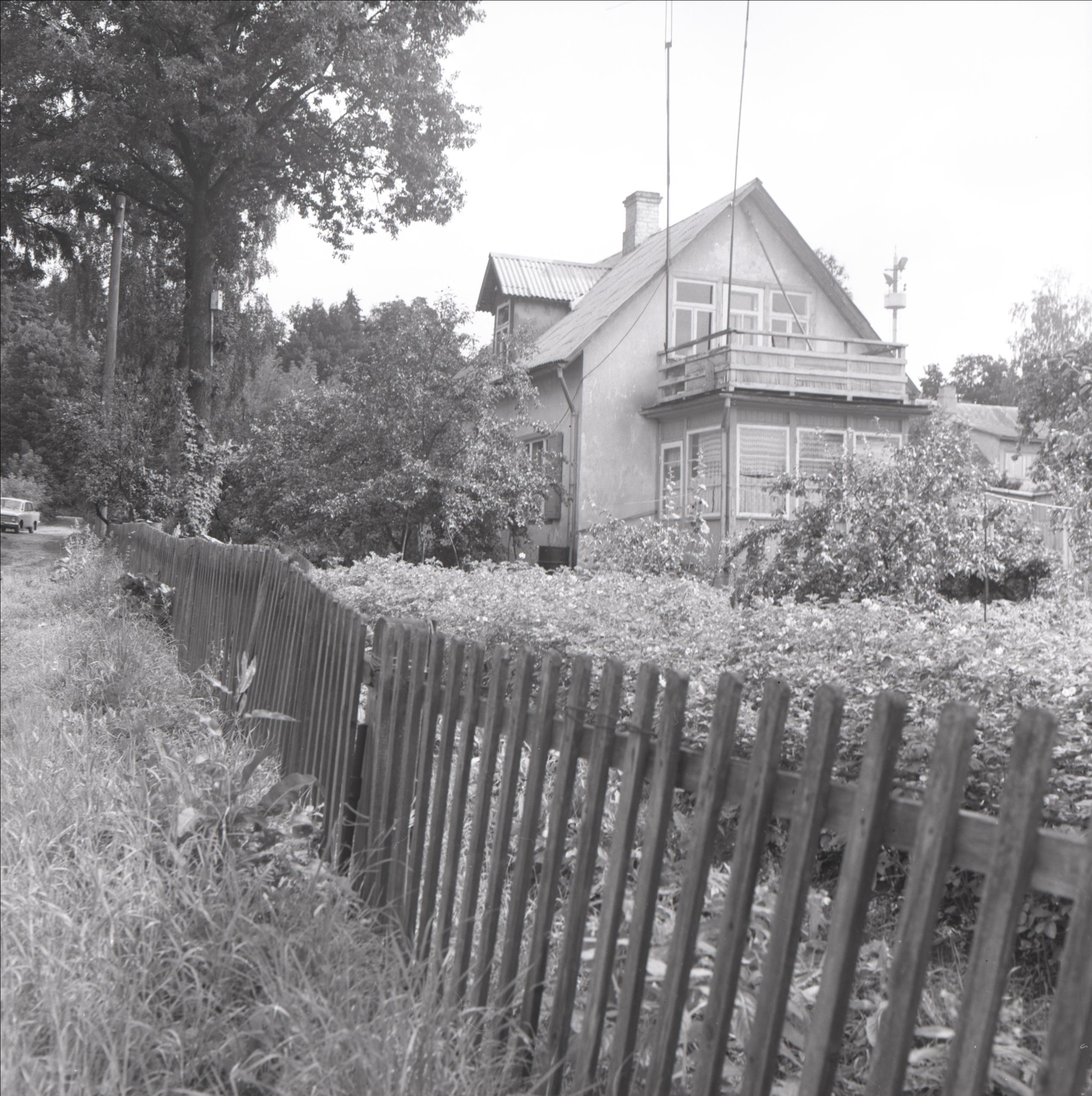 Māja Pārogrē, kur nelegālo darbu veica Ķeguma komunisti: Divstāvu dzīvojamā ēka. Fasādes, dārzs, sēta
