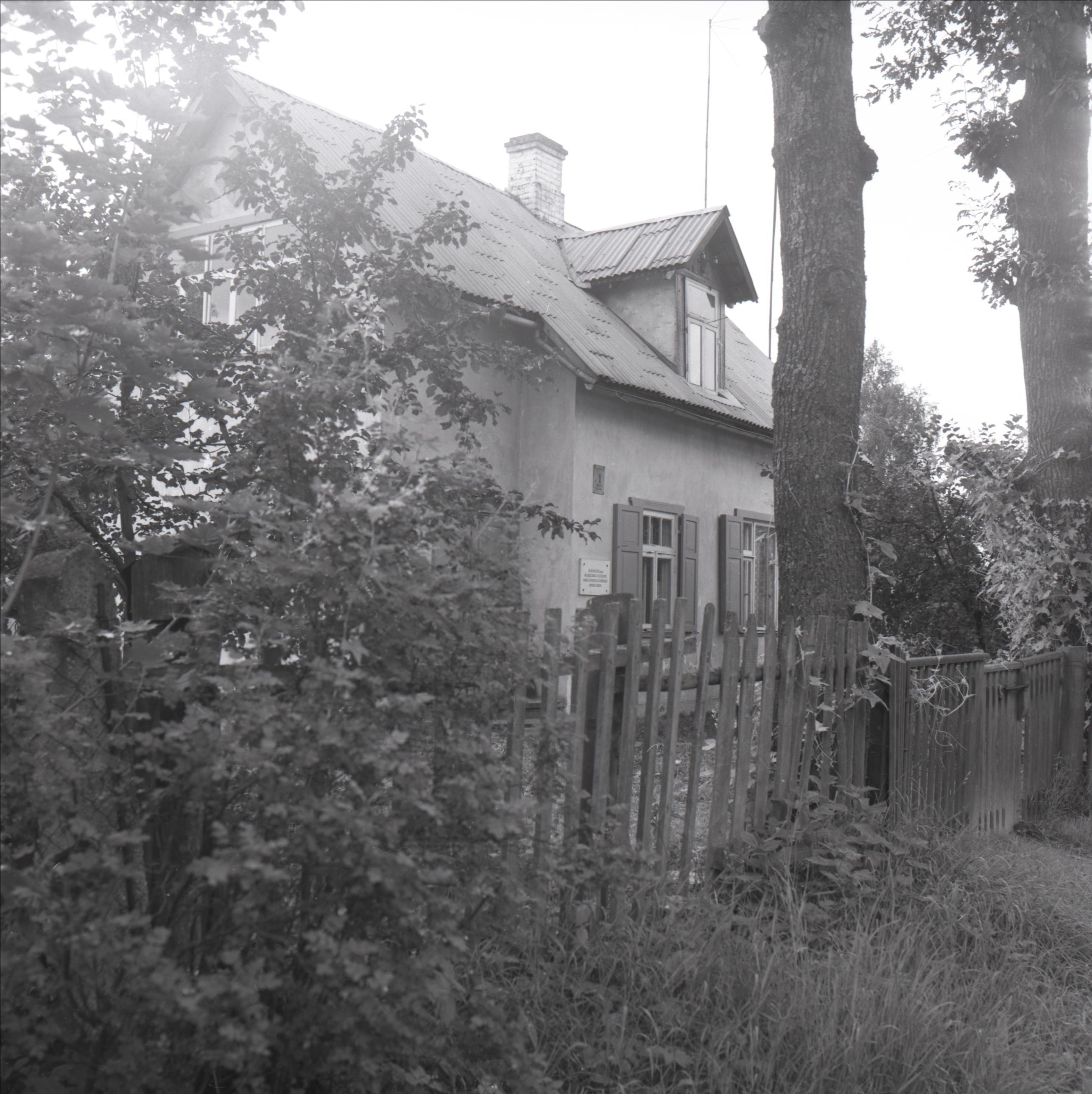 Māja Pārogrē, kur nelegālo darbu veica Ķeguma komunisti: Divstāvu dzīvojamā ēka. Fasādes, dārzs, sēta, koki, krūmi