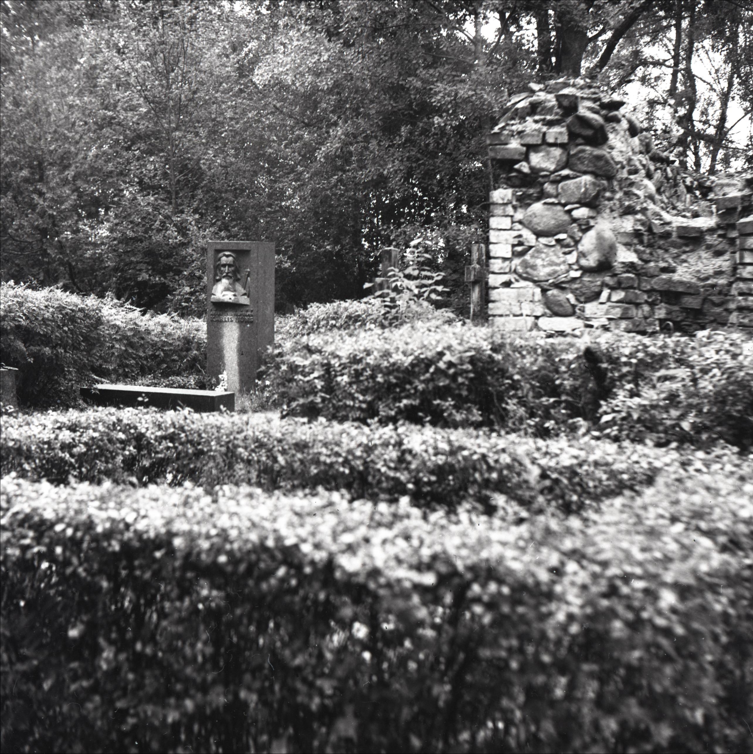 Kārļa Hūna kaps Madlienas kapos: Kapa piemineklis, dzīvžogs, kapličas drupas