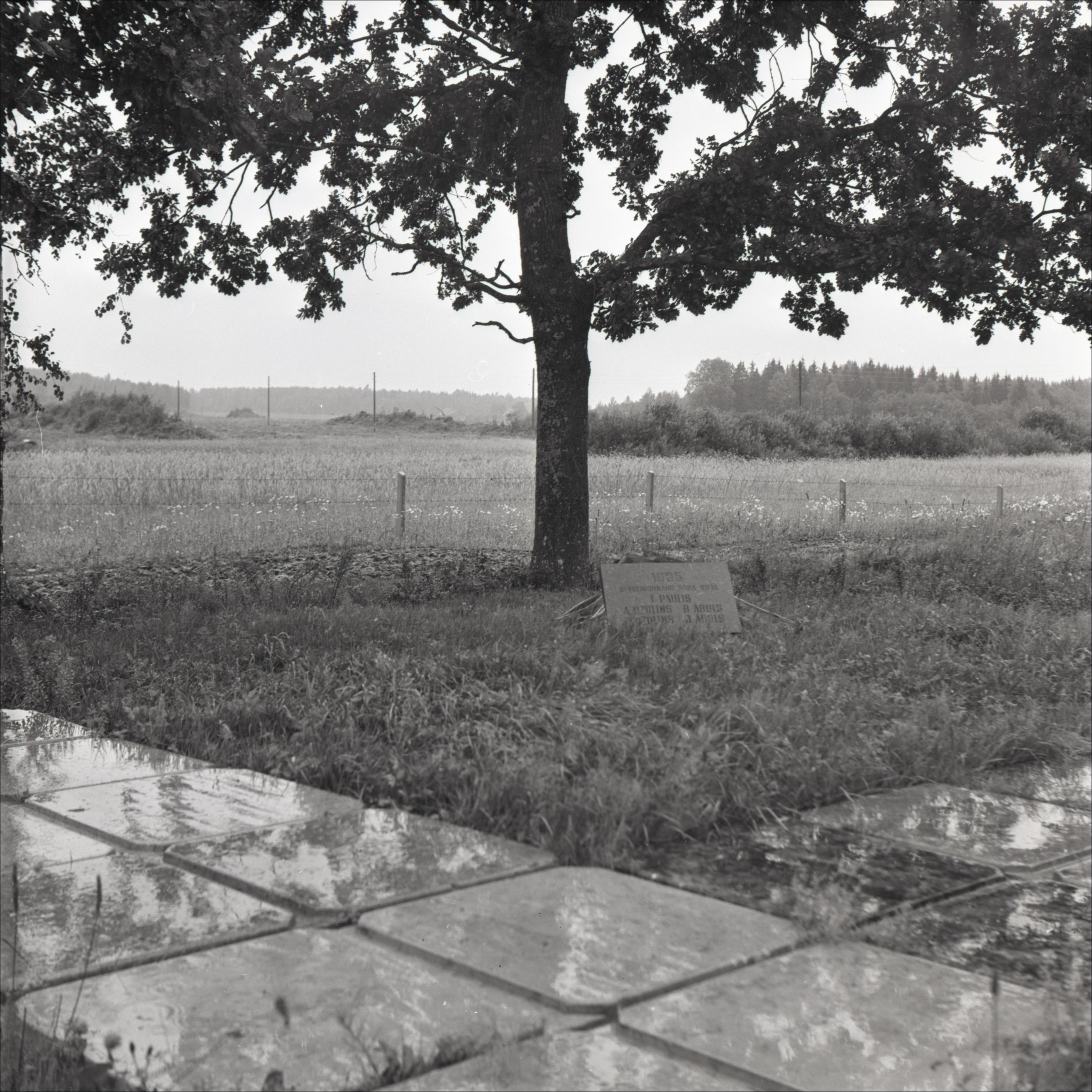 Piecu 1905. gada revolucionāru kapi Meņģelē: Piemiņas plāksne, aiz tās ozols