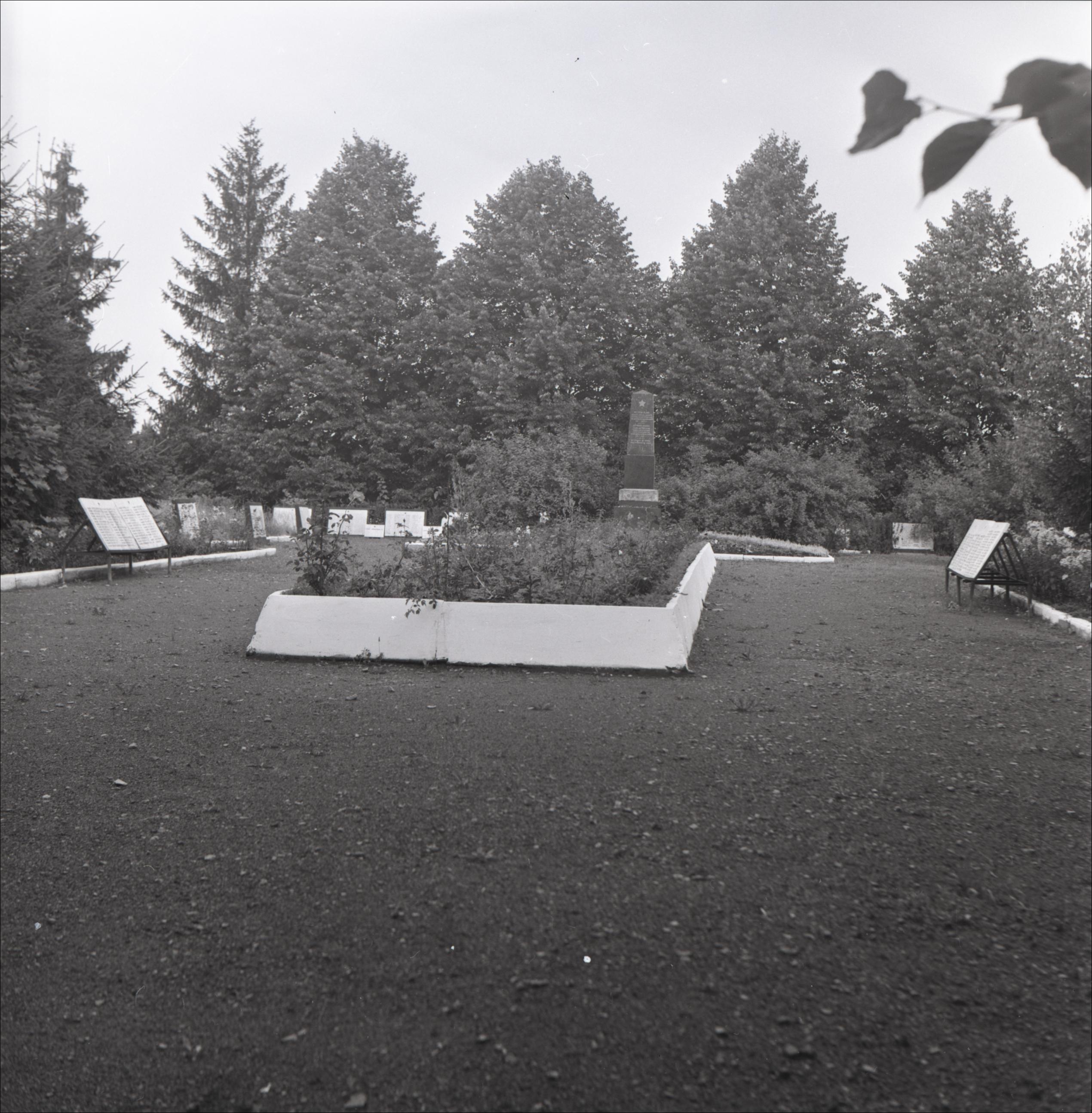 2. pasaules kara kapi pie "Rogu" mājām: Obelisks, piemiņas plāksnes vairākās vietās, ansambļa centrā apstādījumi