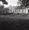 Ēka: Divstāvu mūra ēka, fasāde, logi, dekoratīvas kolonnas. Dārzs, dzīvžogs, koki, krūmi