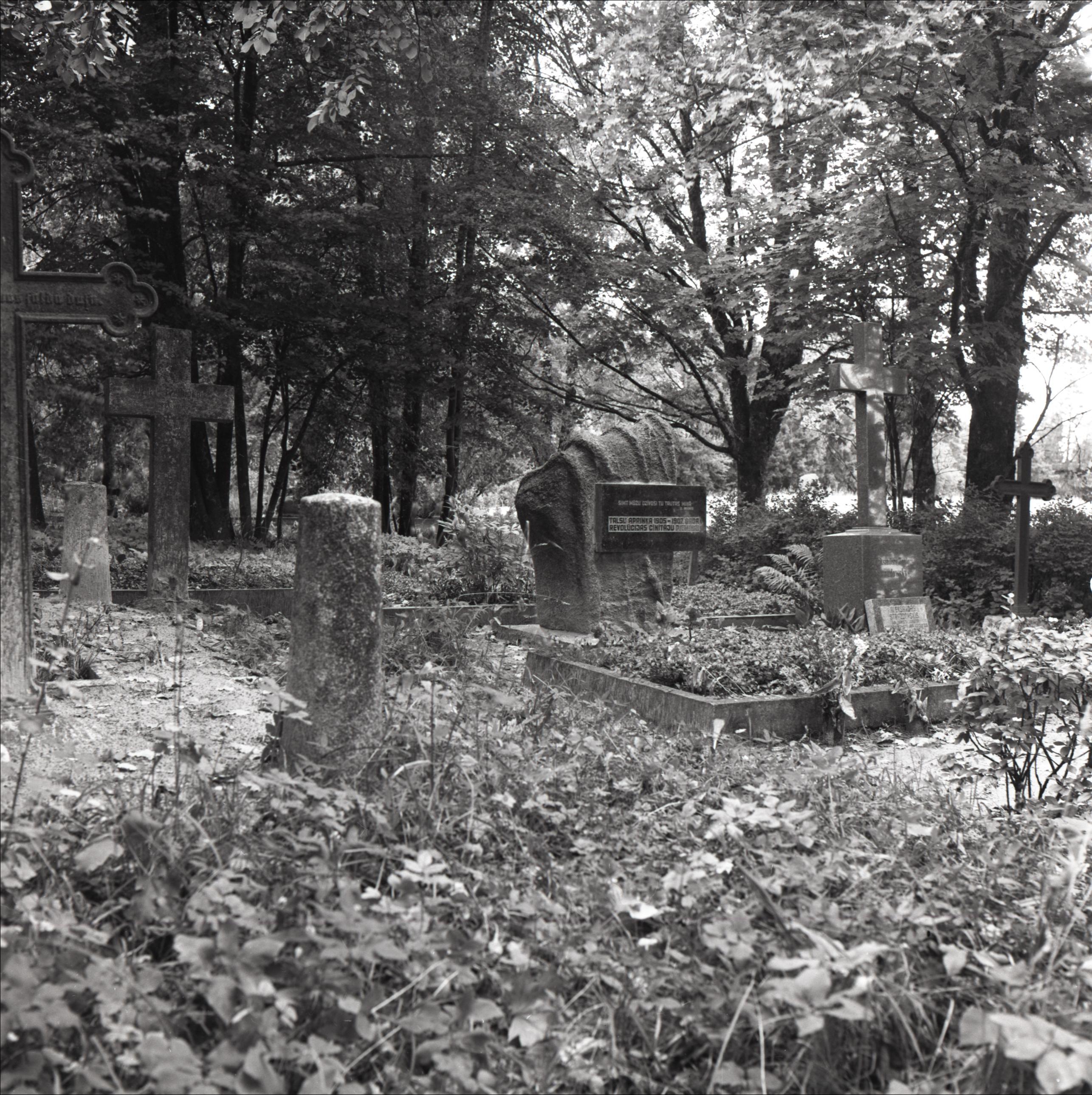 Piemiņas akmens 1905. gada revolucionāriem: Akmens, centrā plāksne ar uzrakstu latviešu valodā. Apkārt kapa vietas