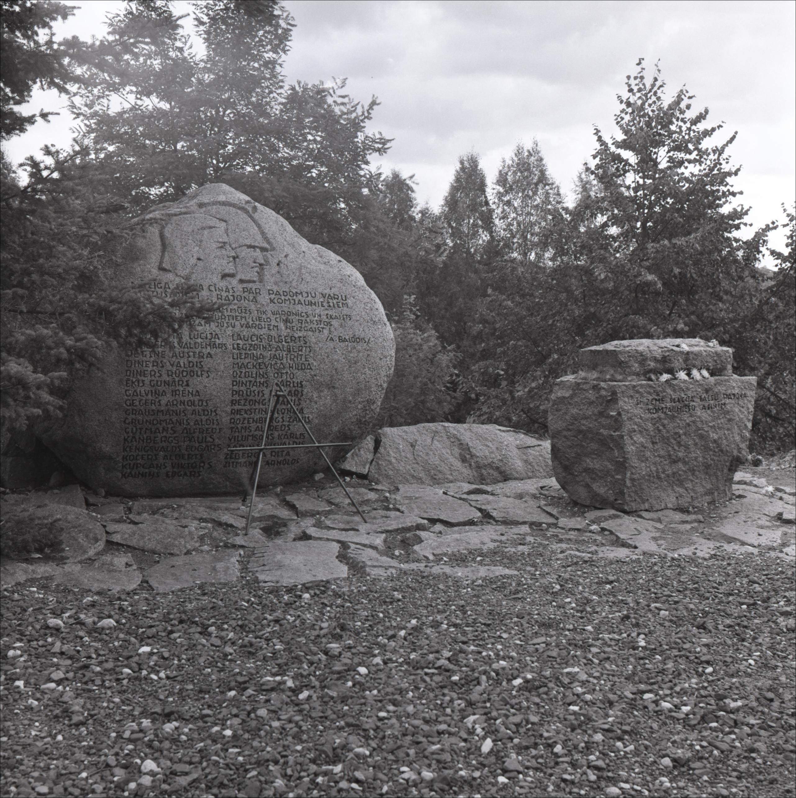 Piemineklis kritušajiem Talsu rajona komunistiem: Divi piemiņas akmeņi ar iegravētu uzrakstu un attēlu (vīrieša un sievietes profils). Tiem priekšā metāla statīvs