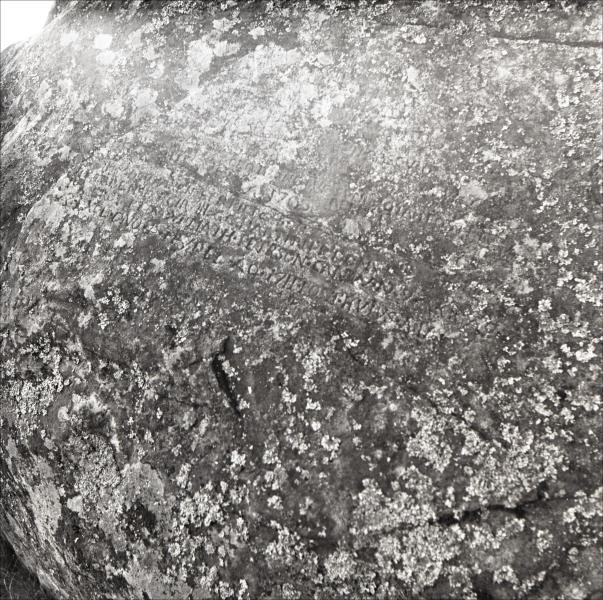 Mēra akmens: Akmens tuvplāns, uz tā iegravēti simboli