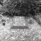 Anša Bērziņa kaps: Kapa vieta ar apstādījumiem, vāzēs ziedi, fonā krūms