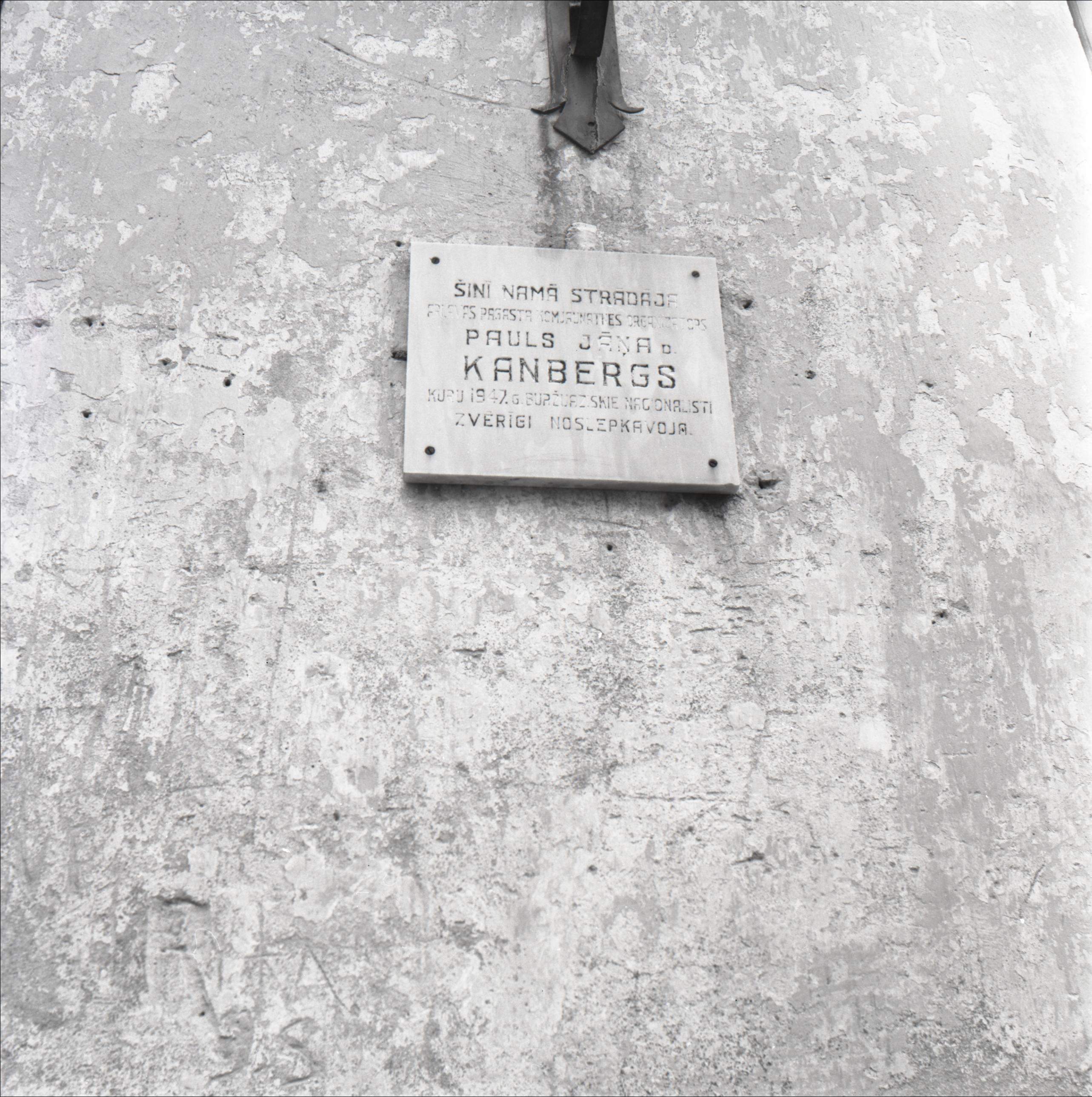 Sasmakas muiža: Piemiņas plāksne Ārlavas pagasta komjaunatnes organizatoram Paulam Kanbergam uz Sasmakas muižas sienas