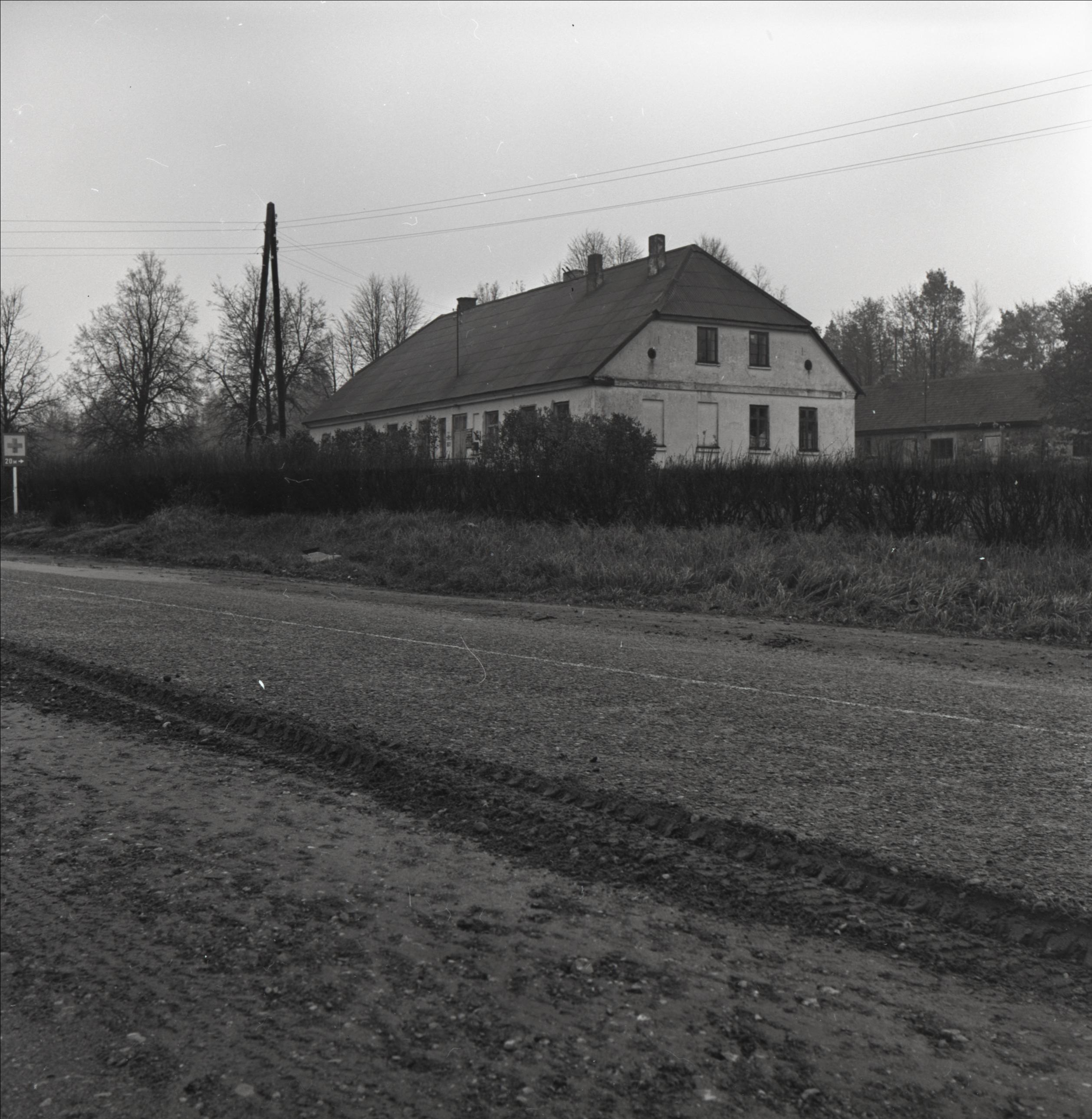 Ēka: Latvijas PSR laikā Lībagu ciema padomes ēka, agrāk skola, kur mācījies Krehuļs. Skats uz ēku no ceļa. Ēkai divslīpju jumts ar pusšļauptiem galiem, fonā redzams šķūnis.