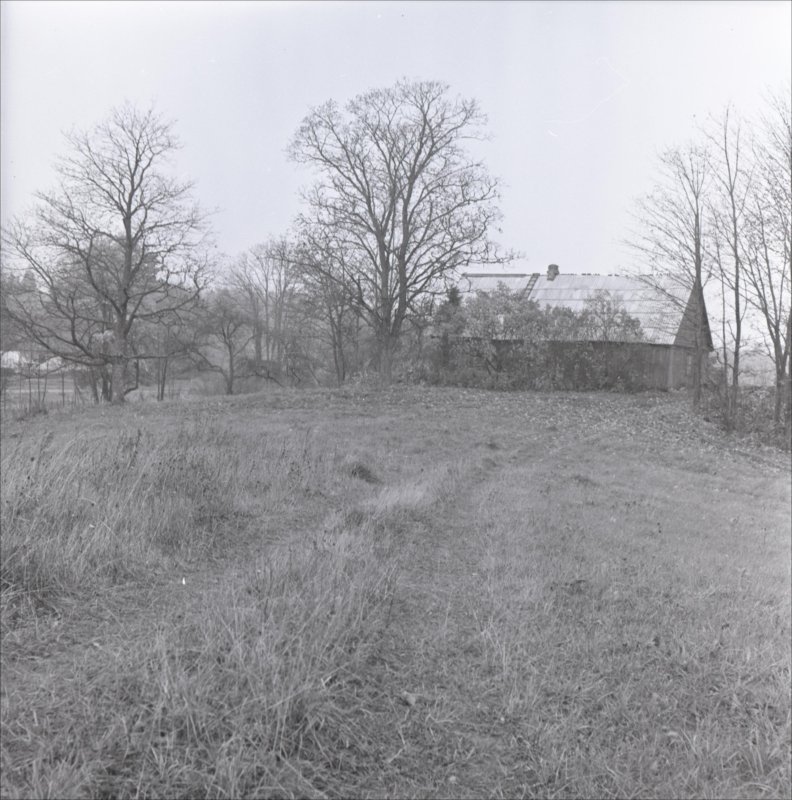Ēka: Zvirgzdiņu mājas - kretuliešu atbalsta bāze. Dzīvojamā māja redzama aiz kokiem un krūmiem. Šajā ēkas pusē šīfera jumts.
