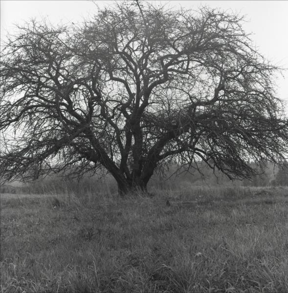 Dīriņu mežābele: "Dīriņu mežābele" - Kretuliešu pasta punkts. Ābeles tuvplāns. Pie ābeles atrodas koka stabiņš ar plāksni.