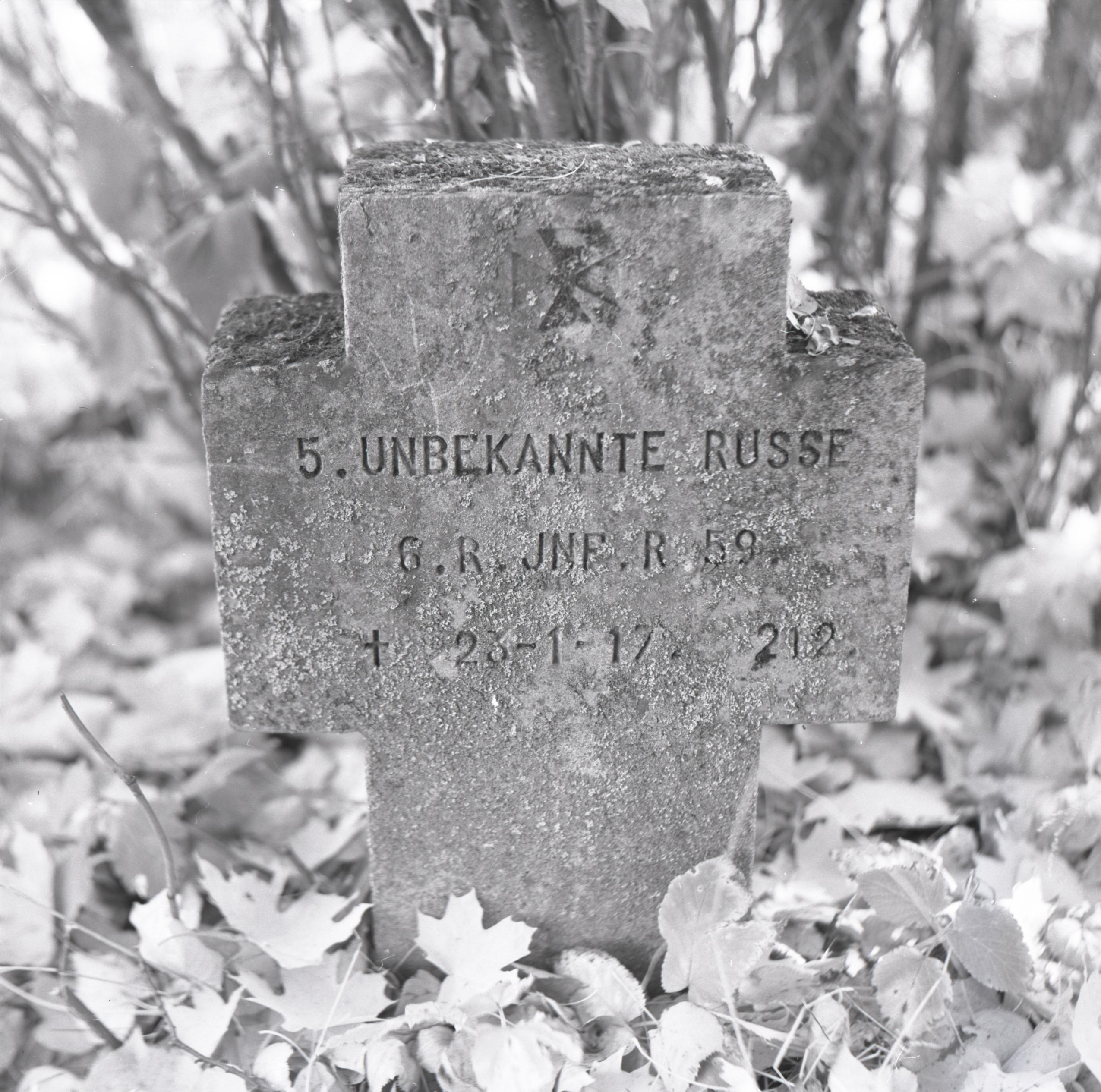 Brāļu kapi pie Kalnciema-Klīves baznīcas: Nezināma 1. pasaules kara krievu karavīra kaps un piemineklis, liets betona krusts