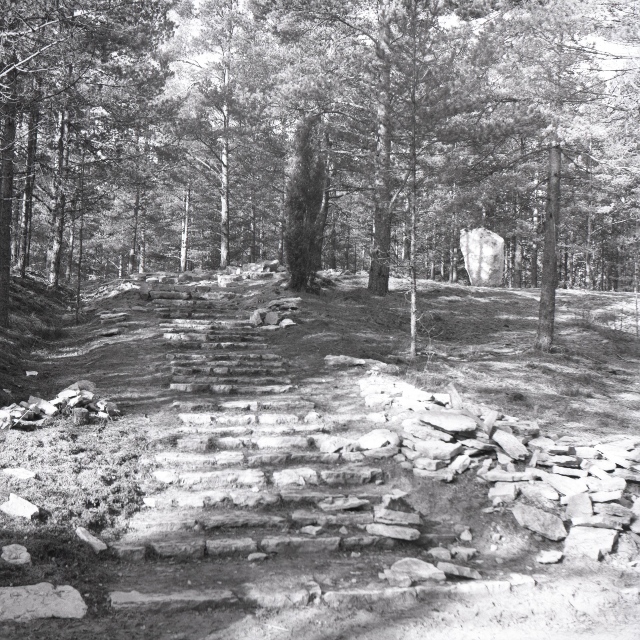 Ložmetējkalns: 1. pasaules kara kauju vieta. Piemineklis Ziemassvētku kaujās kritušajiem. Skats uz pieminekli no attāluma. Uz pieminekli uzkalnā ved no akmens izlikti pakāpieni