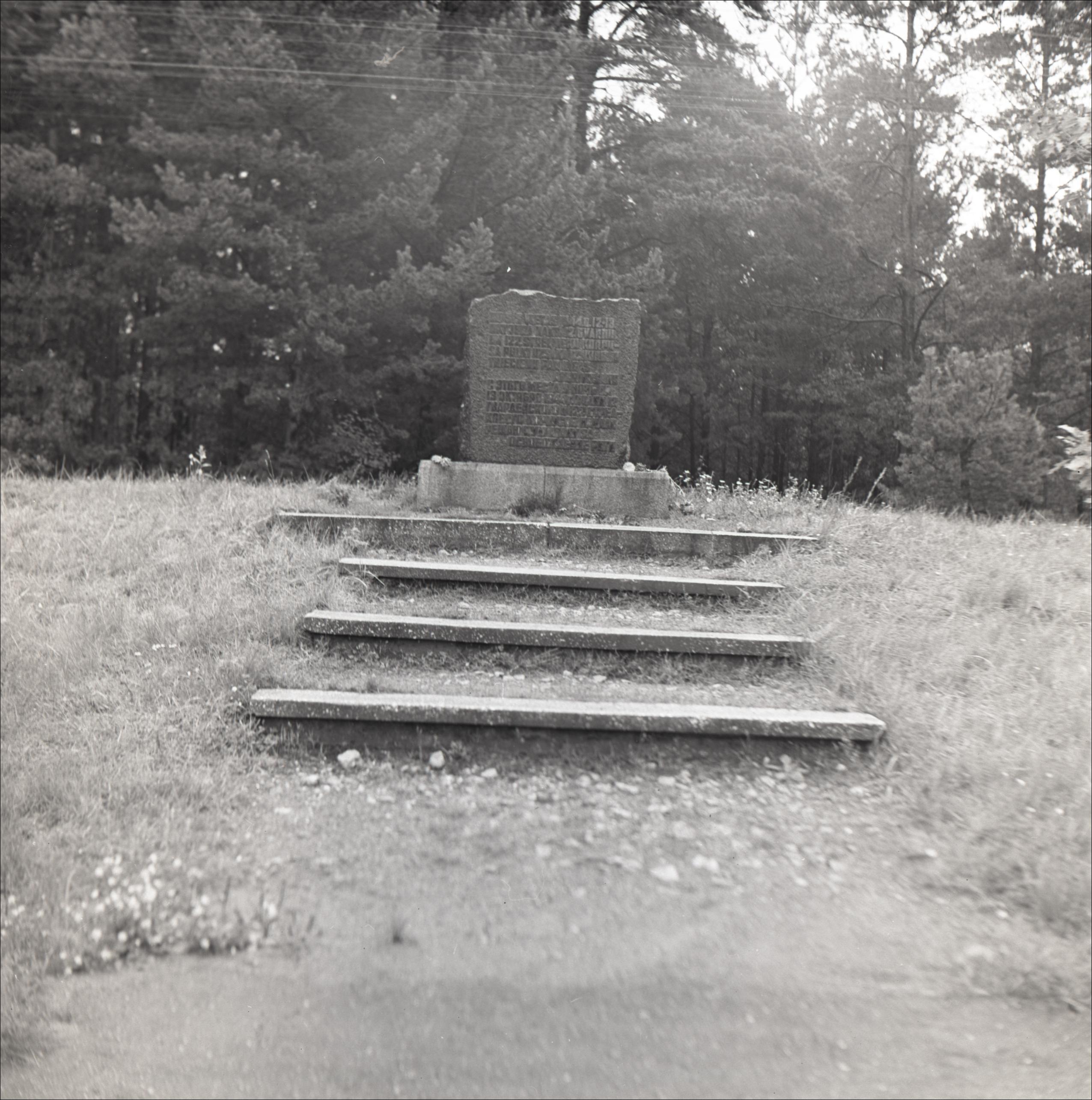 Piemineklis: Piemineklis vietā no kurienes sākās Rīgas atbrīvošana 1944. gadā. Skats no attāluma. Piemineklis atrodas uzkalniņā uz kuru ved pakāpieni.