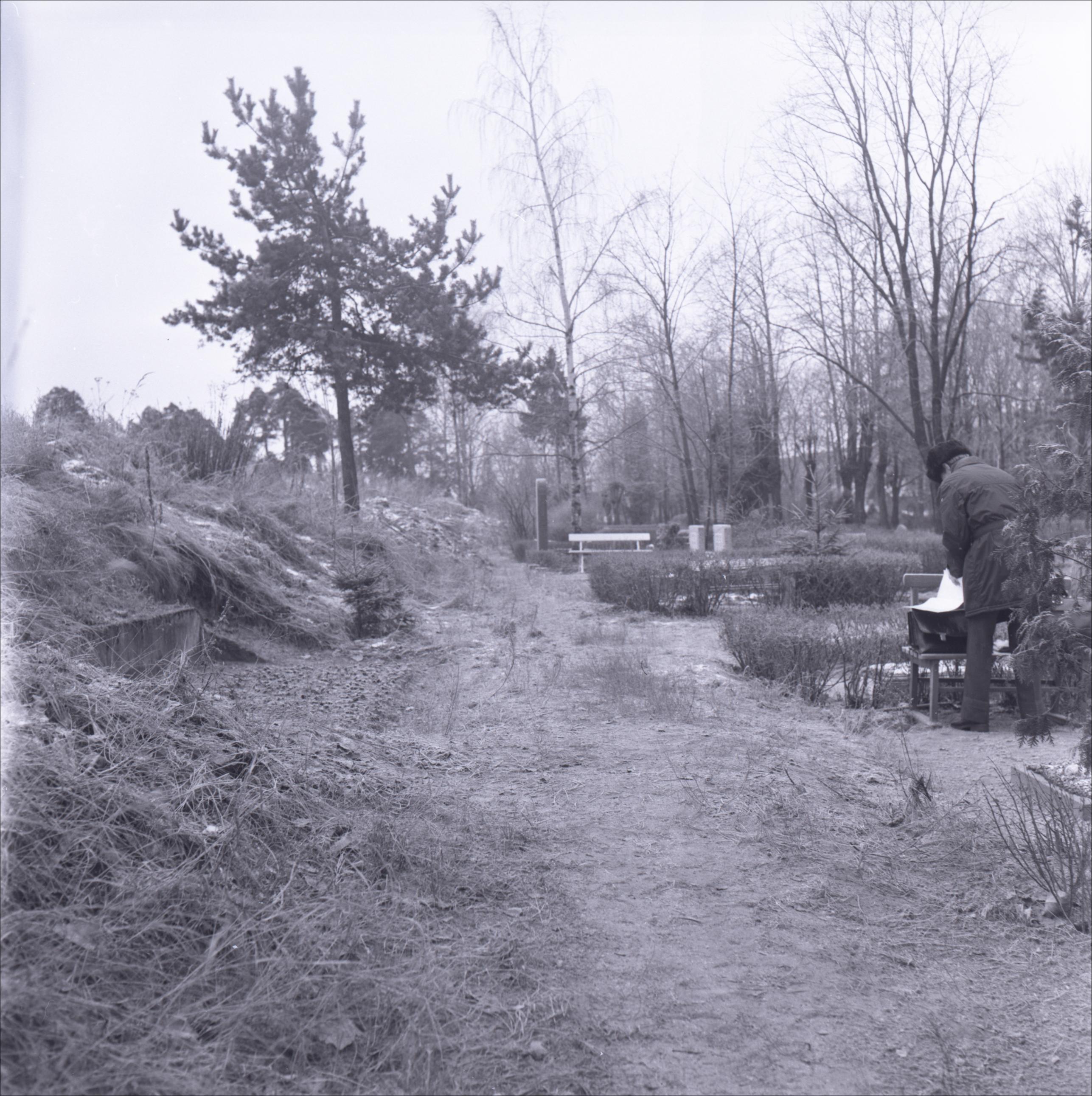 Vecmīlgrāvja kapi: 1919. gada cīnītāju kaps. Kaps attēla kreisajā pusē uzkalniņa apakšā. Labajā pusē citas kapu kopas un pieminekļi, pie viena no kapiem stāv cilvēks.